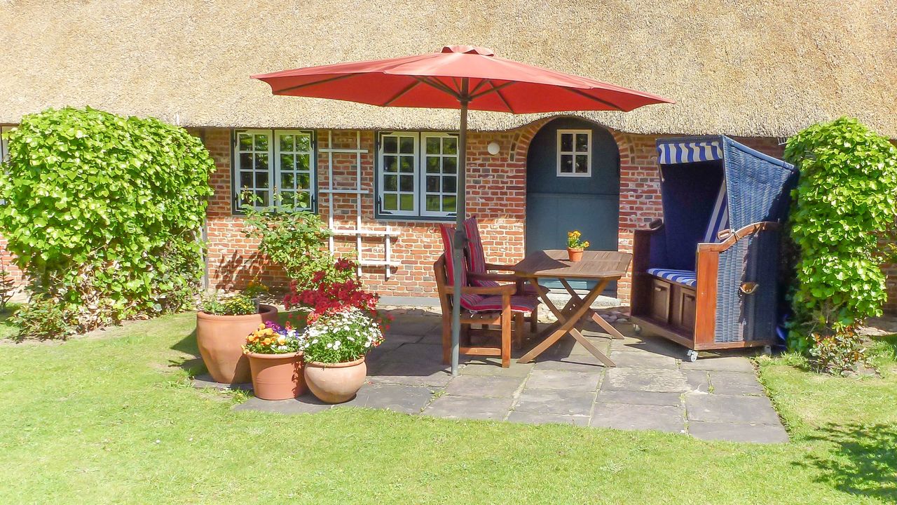 Sie treten hinein durch die traditionell friesische Klöntür und werden von einer geräumigen Diele empfangen. Von hier aus gelangen sie in das geräumige Wohnzimmer mit separatem Essplatz und anliegender Wohnküche. Sie treten aus dem Wohnzimmer hinaus und finden sich auf Ihrer entzückenden nach Süden ausgerichteten Terrasse wieder. Dort können sie in Ihrem Strandkorb und dem restlichen Gartenmobiliar unter dem Sonnenschirm entspannte Stunden verbringen.