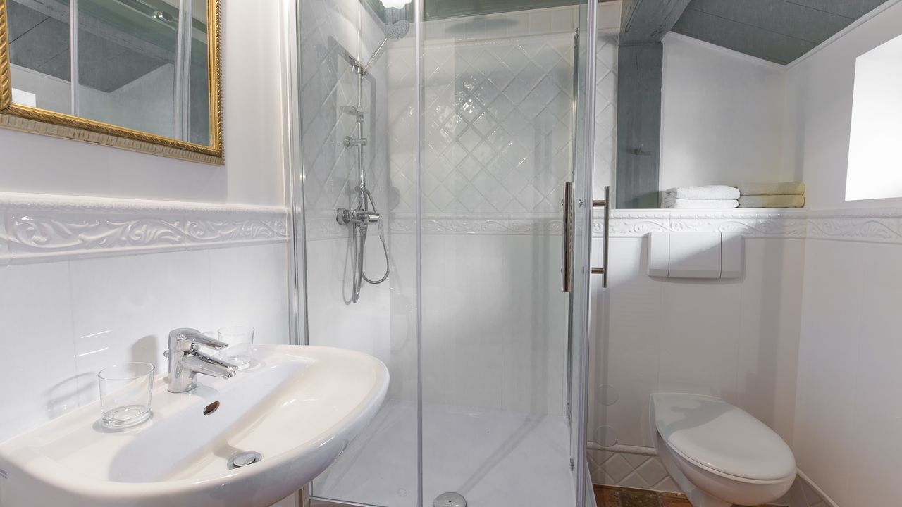 Über eine gut begehbare Treppe kommen sie in das Obergeschoss, welches durch einmalige Dachfenster und eine große Fensterfront eine tolle Raumatmosphäre schafft. Das großzügige zweite Schlafzimmer mit Doppelbett sowie ein separates zweites helles Duschbad mit WC befinden sich ebenfalls auf dieser Ebene.