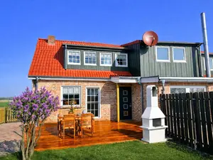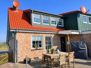 Die zweite Doppelhaushälfte "Huus an´t Diek – Erdgeschosswohnung mit Pool" (für bis zu 4 Personen, 2 Schlafzimmer) kann ebenfalls bei uns gebucht werden.