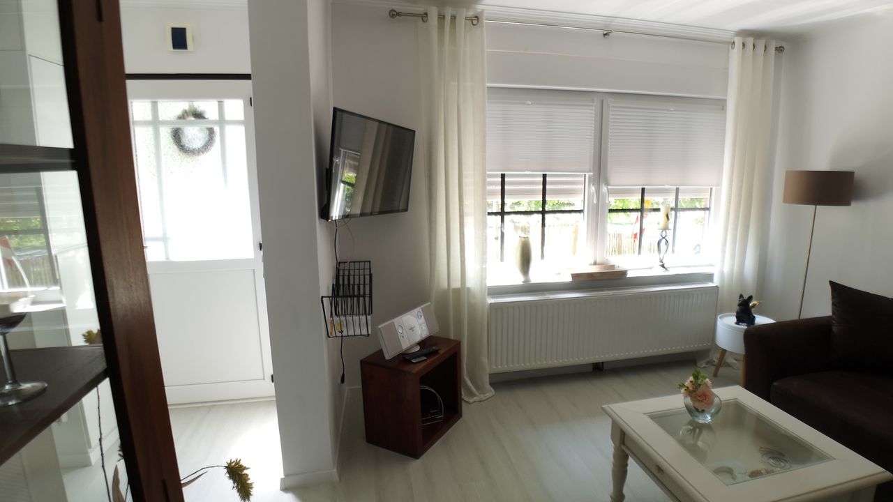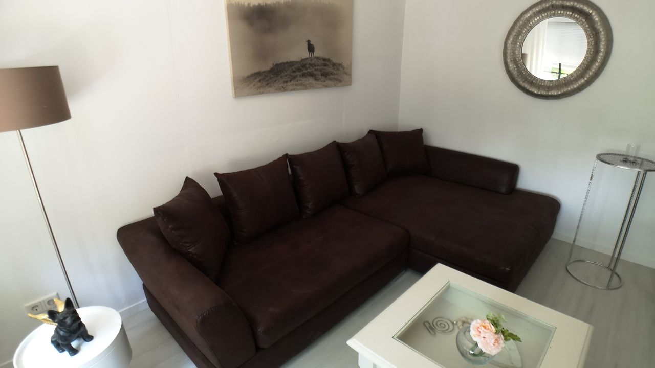 Das gemütliche und helle Wohnzimmer hat einen Smart TV. Im Wohnzimmer relaxen Sie auf der gemütliche Eckcouch.