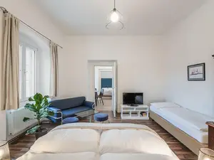 Entdecken Sie Platz und Gemütlichkeit für Familien auf rund 60 m². Wohnen Sie in unserem Apartment mit getrennten Eltern- und Kinderschlafzimmer. Beide Räumlichkeiten sind zusätzlich mit gemütlichen Sofas zum Nachdenken und Faulenzen ausgestattet. Auch die Küche und Essgarnitur ladet zum gemütlichen Essen, Beisammensitzen und zum Plaudern ein. Bad mit Dusche und WC, sowie der Vorraum vervollständigen Ihren Wohnbereich. Es lohnt sich, bei uns zu buchen.Entdecken Sie Platz und Gemütlichkeit für Familien auf rund 60 m². Wohnen Sie in unserem Apartment mit getrennten Eltern- und Kinderschlafzimmer. Beide Räumlichkeiten sind zusätzlich mit gemütlichen Sofas zum Nachdenken und Faulenzen ausgestattet. Auch die Küche und Essgarnitur ladet zum gemütlichen Essen, Beisammensitzen und zum Plaudern ein. Bad mit Dusche und WC, sowie der Vorraum vervollständigen Ihren Wohnbereich. Es lohnt sich, bei uns zu buchen.