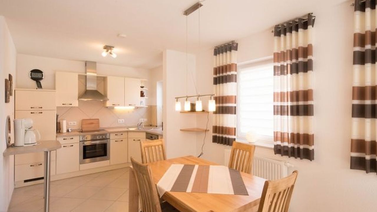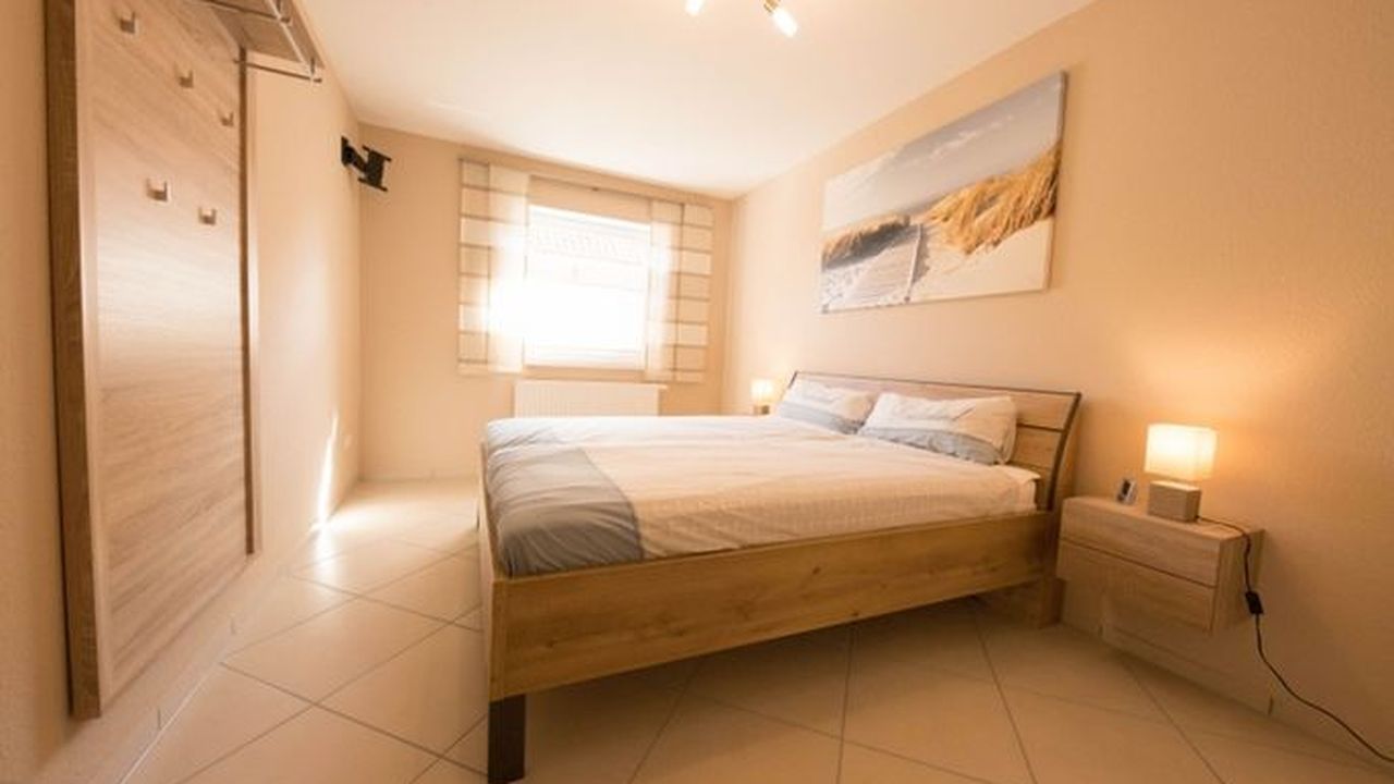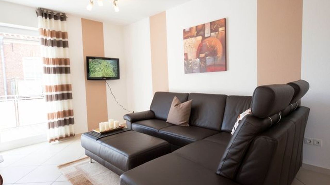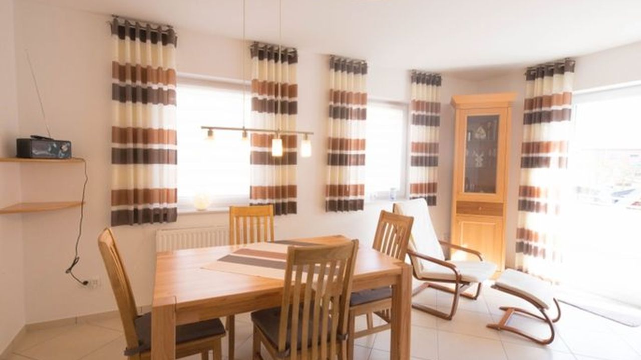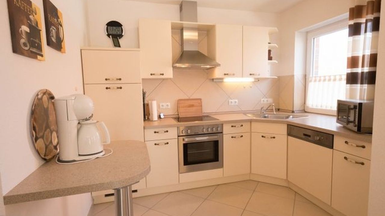 Die hochwertig ausgestattete Ferienwohnung Geismann befindet sich im Herzen von Horumersiel und verfügt mit ihren 75 qm Wohnfläche über ausreichend Platz für bis zu 4 Personen und Kleinkind für einen erholsamen Urlaub. Die Ferienwohnung befindet sich in der ersten Etage eines Sechsparteienhauses mit einem großem sonnigen Balkon. Der große Wohn-/Koch- und Essbereich mit direktem Zugang zum Balkon verfügt über eine Fußbodenheizung und bietet Ihnen eine moderne und voll ausgestattete Küche mit Backofen, Herd mit Cerankochfeld, Spülmaschine sowie Kühl- und Gefrierschrank. Der Wohnbereich besticht mit einer hochwertige und gemütliche Ledereckcouch sowie einem Flachbild- Fernseher und einer Musikanlage. W-Lan steht Ihnen kostenfrei zur Verfügung. Die Ferienwohnung Geismann verfügt über zwei Schlafzimmer, davon eines mit einem Doppelbett, Kleiderschrank sowie einem zweiten TV und das zweite Schlafzimmer mit zwei Einzelbetten. Das helle Tageslicht-Badezimmer verfügt über eine Dusche, ein Waschbecken und WC und verwöhnt ebenfalls mit Fußbodenheizung. Eine Waschmaschine sowie ein Wäscheständer, Staubsauger usw. befinden sich im großen Abstellraum. Sämtliche Fenster verfügen über elektrische Rollläden. Die Wohnung ist komplett gefliest.. Es handelt sich um eine Nichtraucherwohnung. Haustiere sind nicht erlaubt. Ein PKW-Stellplatz ist direkt vor dem Haus vorhanden. Eine Unterstellmöglichkeit für Fahrräder ist ebenfalls gegeben.Thalasso Meeres Spa - eine geniale Wellness Oase, um einfach mal die Seele baumeln zu lassen, ist fussläufig in unmittelbarer Nähe.