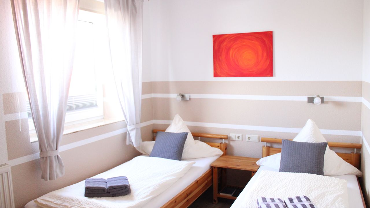 Die Ferienwohnung 1 ist eine helle und geräumige Ferienwohnung mit Balkon. Sie ist ~50m² groß und für bis zu 4 Personen eingerichtet.