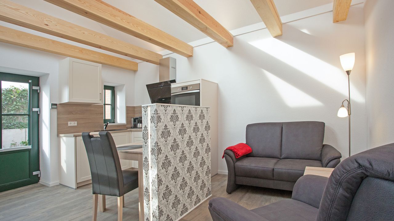 Herzlich Willkommen in der Wohnung "Bucki"Die Wohnung Bucki ist ein ebenerdiger ca. 33qm großer Bungalow mit eigenem Zugang mit 4* Sterne Niveau. Sie ist mit 1 Schlafzimmer, Duschbad und hellem Wohnzimmer mit integrierter Küchenzeile für 2 Personen geeignet.