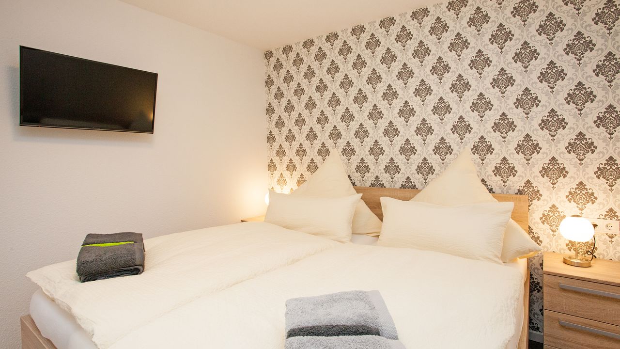 1 Schlafzimmer mit Doppelbett und Kabel-TV