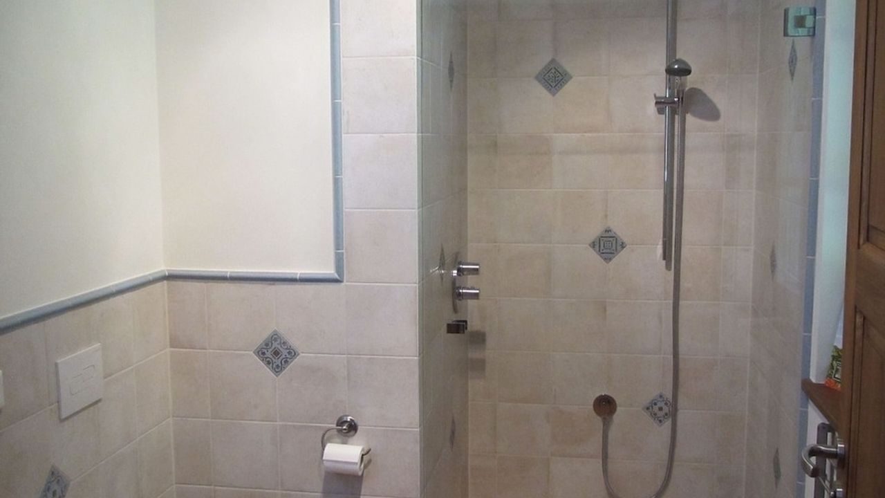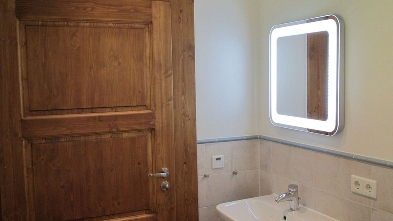 Der Zugang zum Haus erfolgt über eine dreistufiges Treppchen. Das Bad im Erdgeschoß ist ebenerdig.
