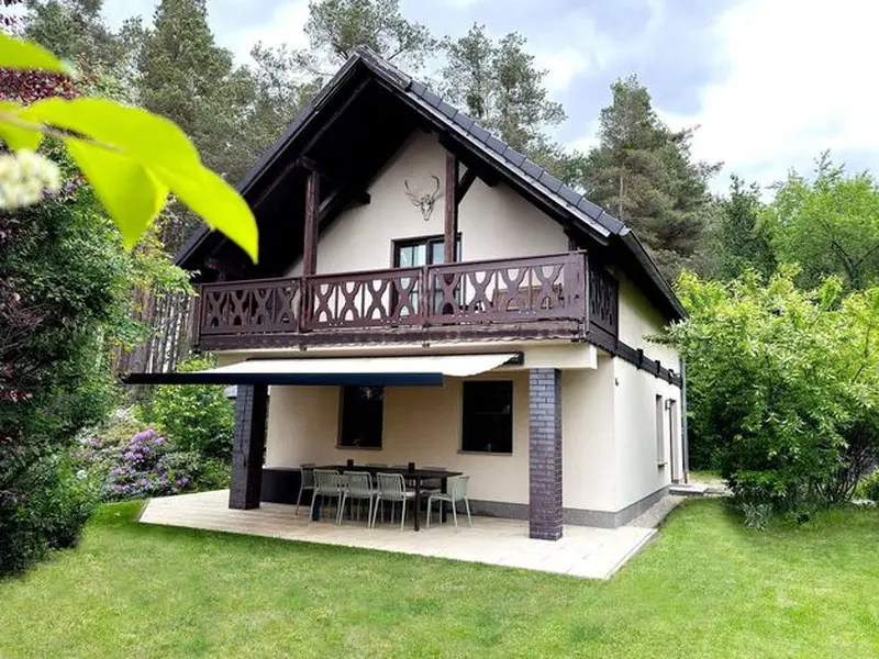 Das Ferienhaus mit großem, eingezäuntem Grundstück bietet die optimalen Bedingungen für Spaß und Entspannung zu Zweit, mit Freunden oder der Familie. Sie wohnnen ruhig und entspannt unter Kiefernbäumen. Mehrere Terrassen und Sitzecken laden zum Verweilen ein. Ihre Kinder vergnügen sich auf der grünen Wiese mit Spielplatz und Trampolin. Die angelegte Grillecke bietet Ihnen viel Platz für ausgiebige Mahlzeiten im Freien. Hier können Sie in Ruhe die gemeinsame Zeit genießen.Das Ferienhaus ist modern eingerichtet und bietet Ihnen insgesamt 8 Schlafplätze. Im Erdgeschoss befindet sich die separate Einbauküche, die voll ausgestattet ist, mit einem Geschirrspüler, einem Cerankochfeld mit vier Kochmöglichkeiten, einem Backofen, einem Kühlschrank mit Gefriermöglichkeit, einer Kaffeemaschine, einem Wasserkocher sowie einem Toaster. Das Wohnzimmer bietet Ihnen genug Platz, mit einer gemütlichen Couchecke, Kamin und einem großen Esstisch. Sie haben direkten Zugang zur Terrasse. Das Badezimmer Dusche und WC befindet sich ebenfalls im unteren Wohnbereich.