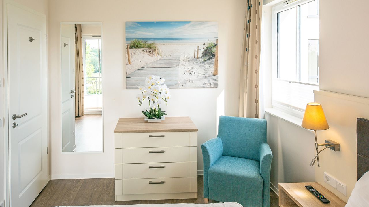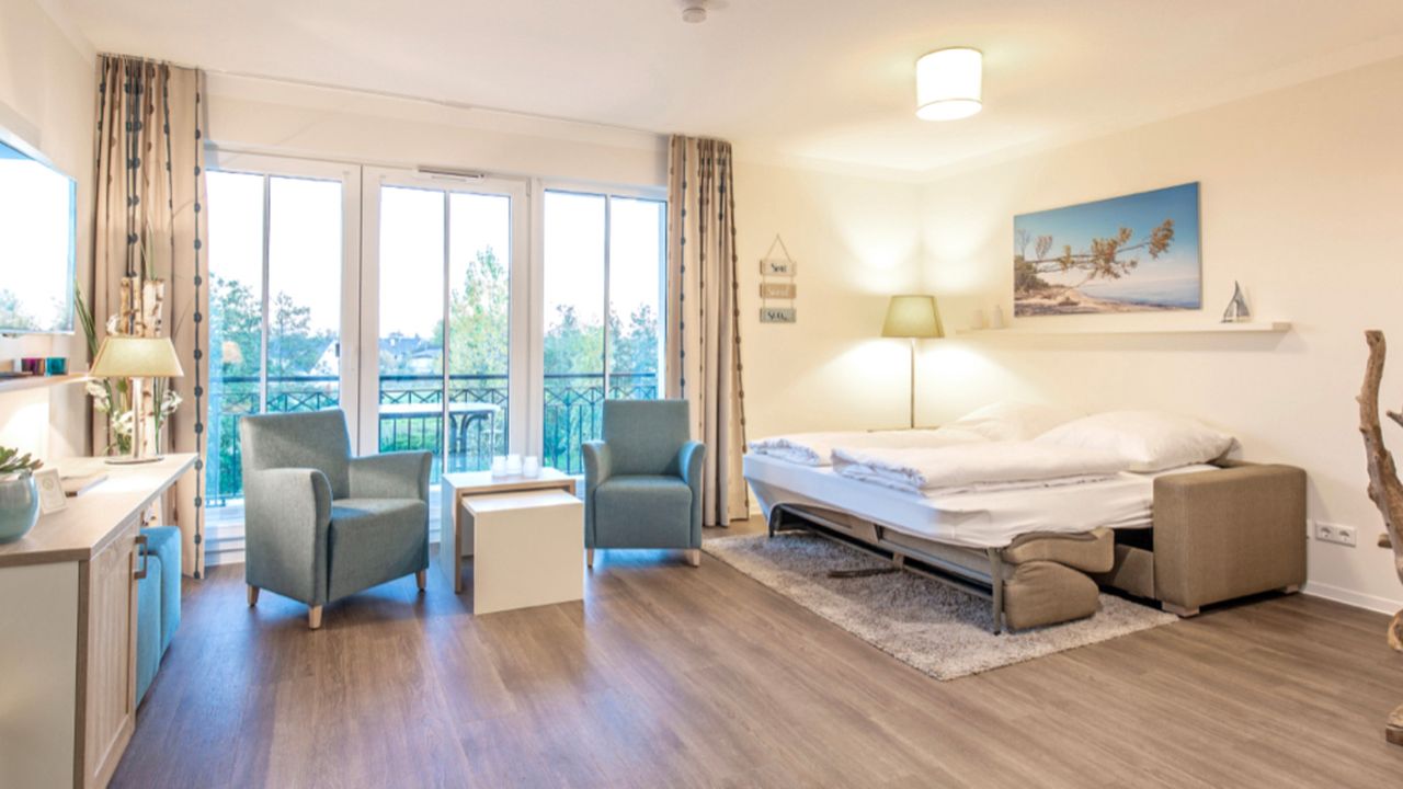 Das 58 m² großzügig konzipierte lichtdurchflutete Zwei-Zimmer-Nichtraucher-Apartment 2-50 i ist für bis zu 3 Personen geeignet. Es verfügt über eine voll ausgestattete Küche, zwei TV's, Couchgarnitur mit Schlaffunktion (1,60x2,00), Schreibtisch, grosses Boxspringbett (1,80x2,00), Schranksafe und ein grosses Bad mit Regendusche. Genießen Sie den von beiden Zimmern begehbaren sonnigen grossen Süd-Balkon mit seitlichem Blick auf die Ostsee und auf die neben dem Hotel gelegene gepflegte Parkanlage.Die Unterkunft