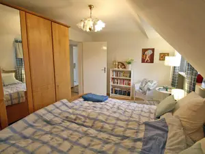Diese Wohnung hat ca. 75 qm Wohnfläche, einen kleinen Balkon sowie eine große Terrasse mit Seeblick und Terrassenmöbeln. Ein Babybett ist ebenso vorhanden. Außerdem gibt es in der Küche zus. Hochstühle für kleine Kinder.In der Wohnung befinden sich 2 Schlafzimmer (1x Doppelbett, 1x Einzelbett + 1 Etagenbett). Für die 6. Person gibt es bei Bedarf im Wohnzimmer eine ausziehbare Couch.