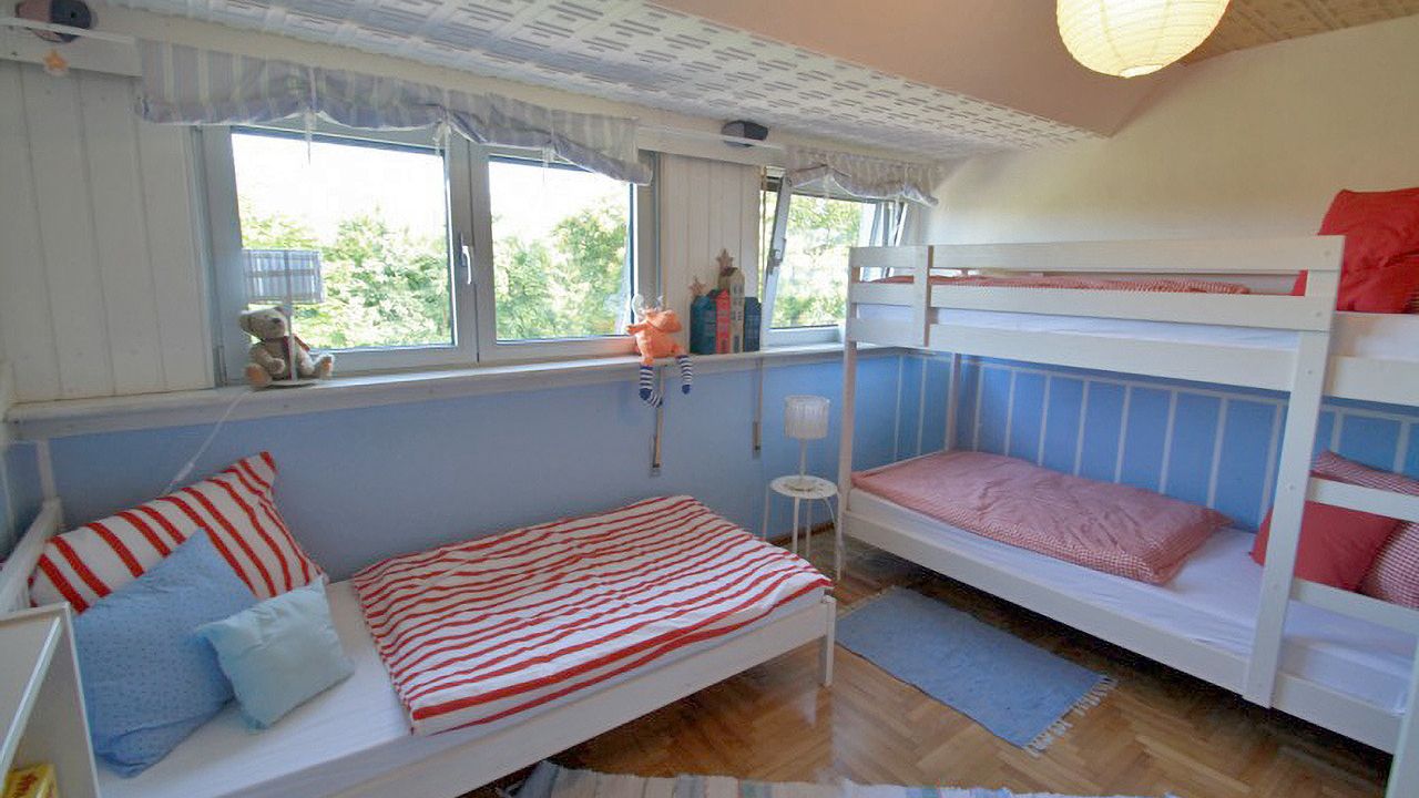 Diese Wohnung hat ca. 75 qm Wohnfläche, einen kleinen Balkon sowie eine große Terrasse mit Seeblick und Terrassenmöbeln. Ein Babybett ist ebenso vorhanden. Außerdem gibt es in der Küche zus. Hochstühle für kleine Kinder.In der Wohnung befinden sich 2 Schlafzimmer (1x Doppelbett, 1x Einzelbett + 1 Etagenbett). Für die 6. Person gibt es bei Bedarf im Wohnzimmer eine ausziehbare Couch.