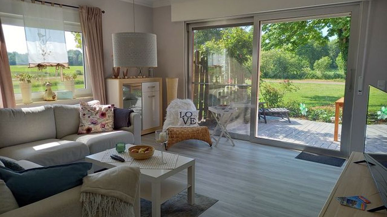 Rhauderfehn liegt zwischen Moor und Meer und hat durch seine kilometerlangen Kanäle und weißen Klappbrücken seinen typischen Fehn-Charakter erhalten. Das Fehn- und Schiffahrtsmuseum in der schönen Jugenstilvilla Graepel, die historische Mühle Hahnentange und die vielen Traditionsveranstaltungen wie z.B. das Rathausfest, der Fehntjer Markt oder unser Maislabyrinth von Ende Juli bis Ende September, sind nur einige Higlights in der Gemeinde. Das geschmackvoll eingerichtete Ferienhaus Dat Landhuus liegt sehr ländlich in Klostermoor und bietet viel Platz für Familien im Haus und Garten. Das Ferienhaus liegt in Klostermoor nicht weit der Einkaufsstadt Papenburg.