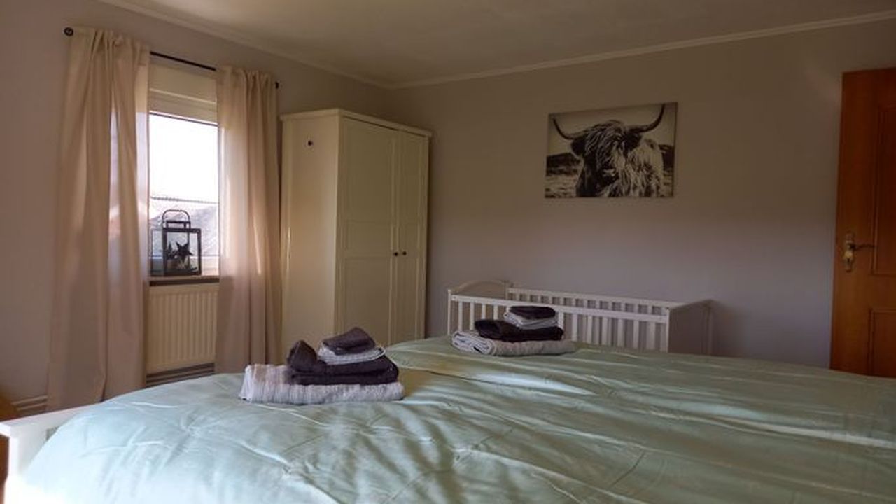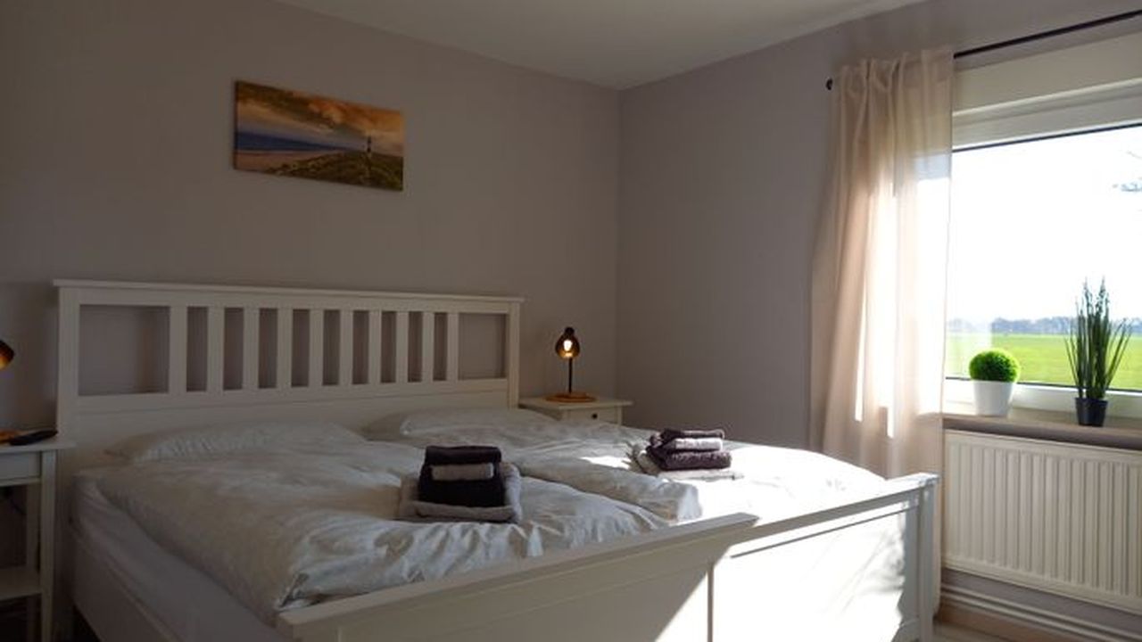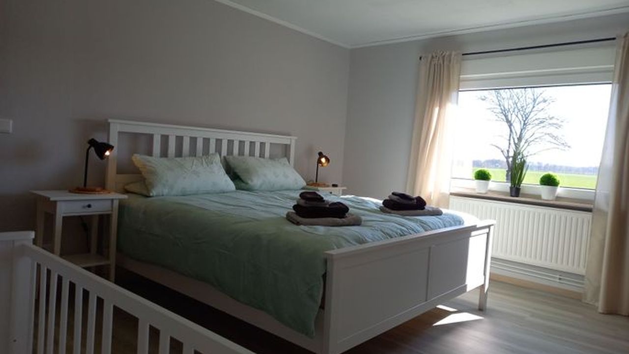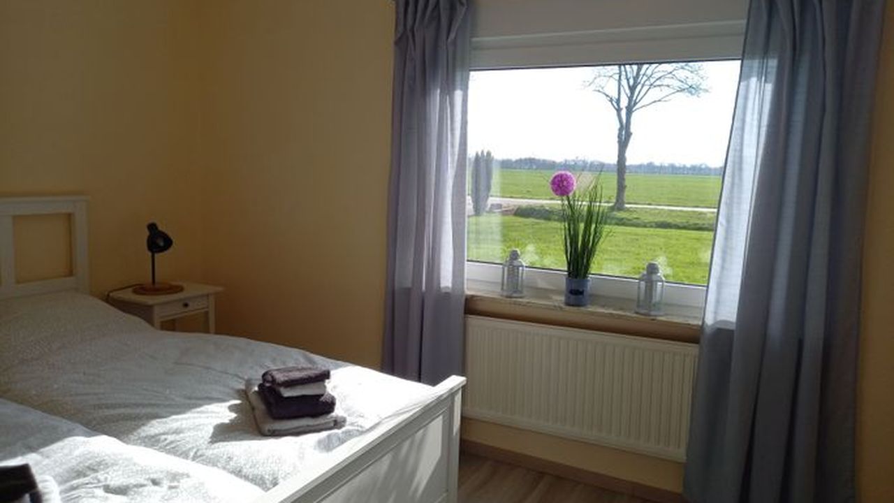 Unser liebevoll renoviertes, allein stehendes Ferienhaus Dat Landhuus liegt direkt an der Deutschen Fehnroute in herrlicher ruhiger Lage. Wir sind ein familienfreundlicher Gastgeber und sehr kinderlieb. Kinder bis zu einem Alter von 6 Jahren dürfen bei uns kostenfrei übernachten.Dat Landhuus verfügt über 4 Schlafzimmer (3 Doppelzimmer/Bettengröße 1,80 x 2,00m und ein Zweitbettzimmer/Bettengröße 0,90 x 2,00m). 1 Doppelzimmer befindet sich im Erdgeschoss, 2 Doppelzimmer und das 1 Zweitbettzimmer befinden sich im Obergeschoss, zwei Bäder, davon eins mit ebenerdiger Dusche/WC im Erdgeschoss und 1 weiteres mit Badewanne/WC im Obergeschoss. Wir behalten uns vor, bei einer Buchung von 2 bis 4 Personen, nicht alle aufgeführten Schlafzimmer vorzubereiten. Die Auswahl und Anzahl der Schlafzimmer wird vor Anreise individuell mit dem Gast abgestimmt. Für ein Kleinkind bis 3 Jahre steht ein Kinderbett zur Verfügung. Eine voll ausgestattete Küche, 1 Esszimmer, 1 Wohnzimmer mit traumhaften Ausblick über die Landschaft sowie eine gemütliche Terrasse mit Markise. Auf der Terrasse können Sie die Sonne genießen und die Seele baumeln lassen oder auf der Wiese den Kühen beim Grasen zuschauen. Ein Gartenhaus mit Spielzeug Trettrecker, Roller, Rutsche usw.) ist vorhanden, Kinder haben auf dem riesigen Grundstück genug Platz zum Spielen und Toben. Ein abschließbarer Fahrradraum ist vorhanden.