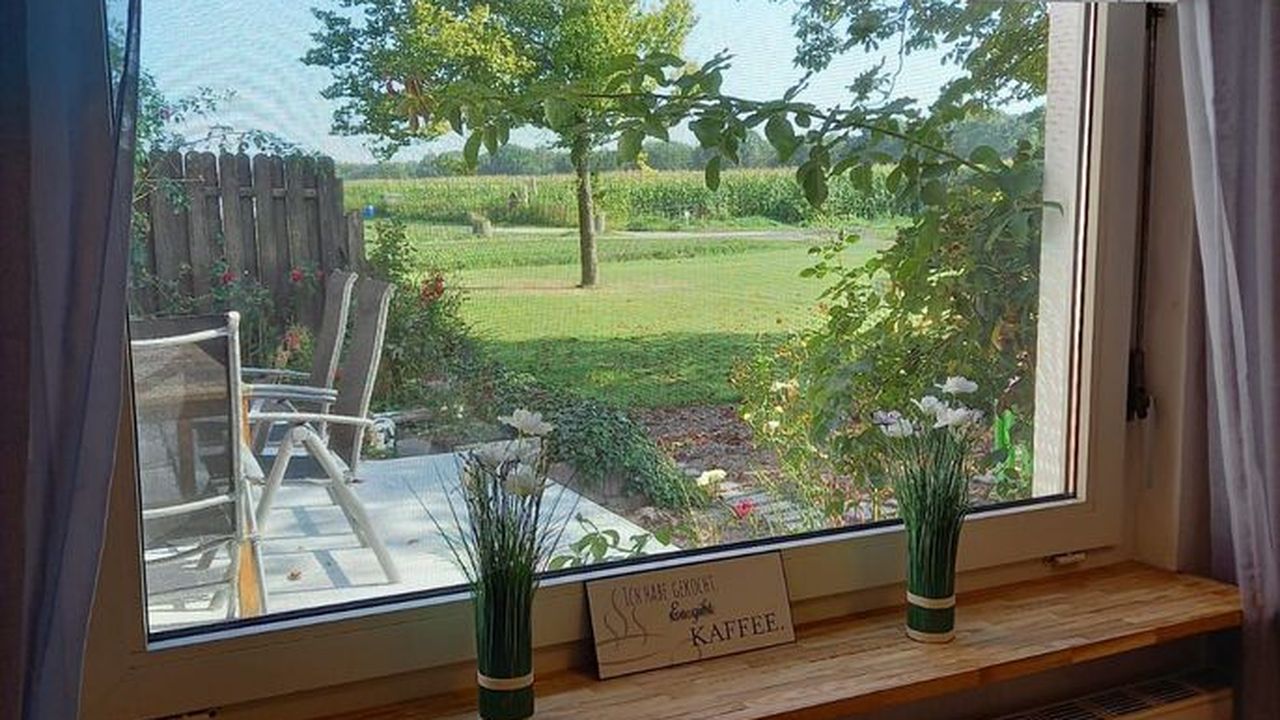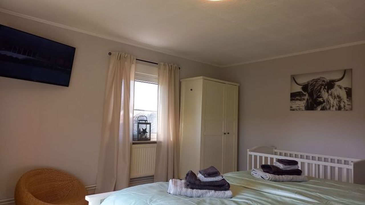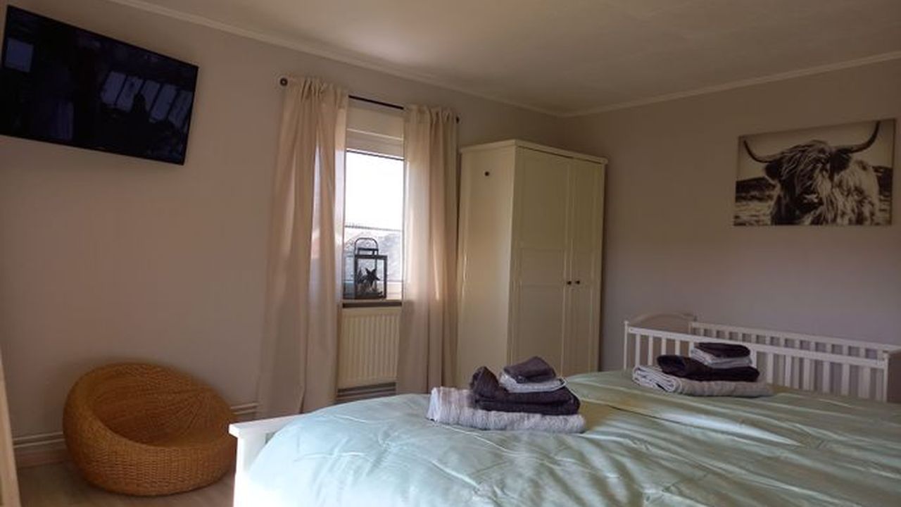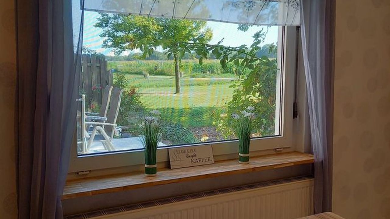 Unser liebevoll renoviertes, allein stehendes Ferienhaus Dat Landhuus liegt direkt an der Deutschen Fehnroute in herrlicher ruhiger Lage. Wir sind ein familienfreundlicher Gastgeber und sehr kinderlieb. Kinder bis zu einem Alter von 6 Jahren dürfen bei uns kostenfrei übernachten.Dat Landhuus verfügt über 4 Schlafzimmer (3 Doppelzimmer/Bettengröße 1,80 x 2,00m und ein Zweitbettzimmer/Bettengröße 0,90 x 2,00m). 1 Doppelzimmer befindet sich im Erdgeschoss, 2 Doppelzimmer und das 1 Zweitbettzimmer befinden sich im Obergeschoss, zwei Bäder, davon eins mit ebenerdiger Dusche/WC im Erdgeschoss und 1 weiteres mit Badewanne/WC im Obergeschoss. Wir behalten uns vor, bei einer Buchung von 2 bis 4 Personen, nicht alle aufgeführten Schlafzimmer vorzubereiten. Die Auswahl und Anzahl der Schlafzimmer wird vor Anreise individuell mit dem Gast abgestimmt. Für ein Kleinkind bis 3 Jahre steht ein Kinderbett zur Verfügung. Eine voll ausgestattete Küche, 1 Esszimmer, 1 Wohnzimmer mit traumhaften Ausblick über die Landschaft sowie eine gemütliche Terrasse mit Markise. Auf der Terrasse können Sie die Sonne genießen und die Seele baumeln lassen oder auf der Wiese den Kühen beim Grasen zuschauen. Ein Gartenhaus mit Spielzeug Trettrecker, Roller, Rutsche usw.) ist vorhanden, Kinder haben auf dem riesigen Grundstück genug Platz zum Spielen und Toben. Ein abschließbarer Fahrradraum ist vorhanden.