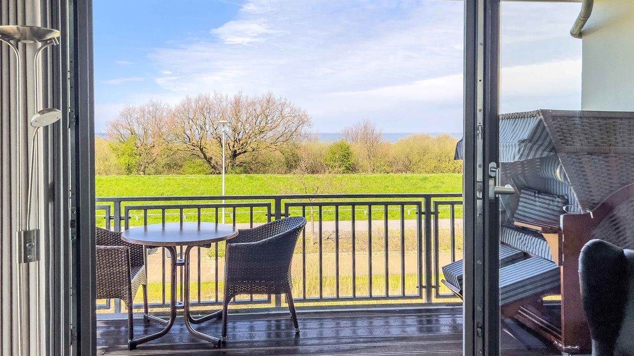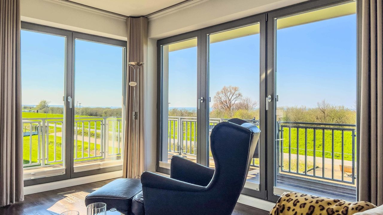 FENSTERFRONT lichtdurchflutet über Eck mit Meerblick auf die Ostsee von der Sitzecke aus als ein Highlight diese Wohnung.