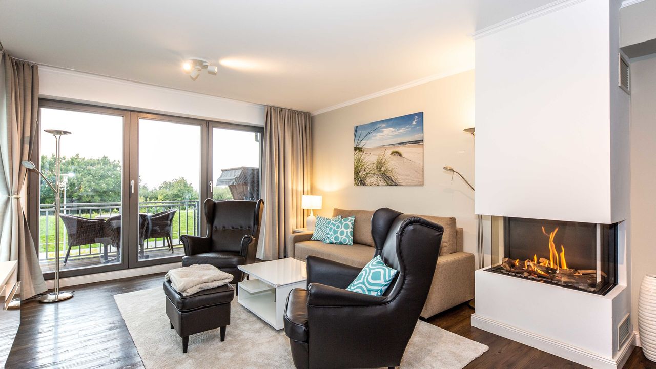 Direkter traumhafter MEERBLICK. Liebevoll eingerichtetes Zweiraumapartment mit Balkon in der ersten Reihe. DIREKT am MEER und nur wenige Meter zum Strand. Ein Highlight ist die lichtdurchflutete Fensterfront mit Blick auf die Ostsee und teils atemberaubenden Sonnenuntergängen. Der Eckbalkon mit Strandkorb, ein geschlossener Kamin, zwei grosse TV's, ein modernes Bad mit bodengleicher Dusche, ein kostenloser TG-PKW-Stellplatz und Fahrstuhl sind weitere Highlights..Beschreibung der Nachbarschaft