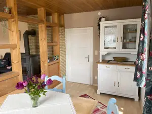Auf 80qm ist Platz für 4 Personen. Im Obergeschoss befindet sich das Schlafzimmer mit zwei Betten, auf Anfrage kann ein Kinderbett dazu gestellt werden. Im Vorraum sind zwei weitere Schlafplätze. Im Erdgeschoss befindet sich der große, sonnige Wohn- und Essbereich, mit Kaminofen und TV, ein kleines Badezimmer und eine separate Toilette. Die Küche ist gut ausgestattet, eine Spülmaschine ist vorhanden. Von der Küche aus gibt es einen direkten Zugang zum großen Garten. am Haus ist ein überdachter Freisitz, in dem man gemütliche Abende verbringen kann. Ein Grill ist vorhanden.Beschreibung der Unterkunft