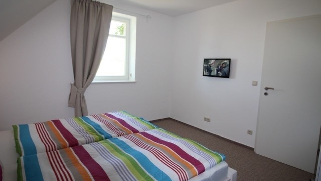 Schöne Ferienwohnung in idyllischer Lage, 2 Schlafzimmer, Terrasse mit Liegewiese.Die im Jahr 2015 erbaute ca. 60 qm große Ferienwohnung ist ausgestattet für 1-4 Personen. Im Erdgeschoss befindet sich das Wohnzimmer mit Zugang zur Terrasse sowie die Küche und das Bad mit Dusche und WC. Im Obergeschoß sind zwei Schlafzimmer mit Doppelbetten, eines davon mit TV.