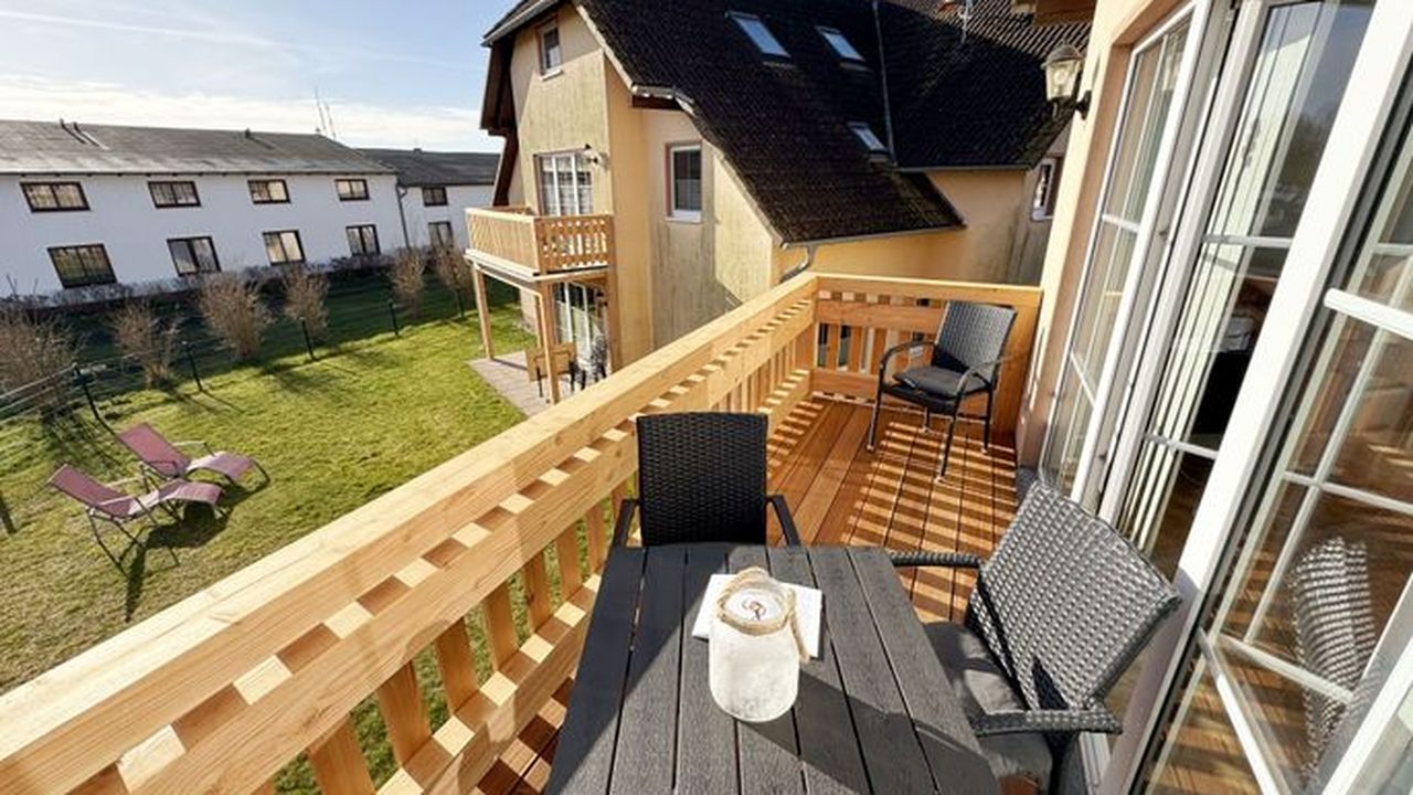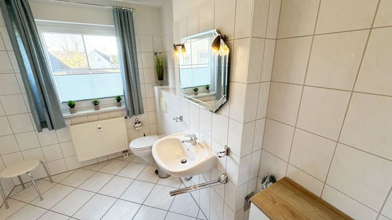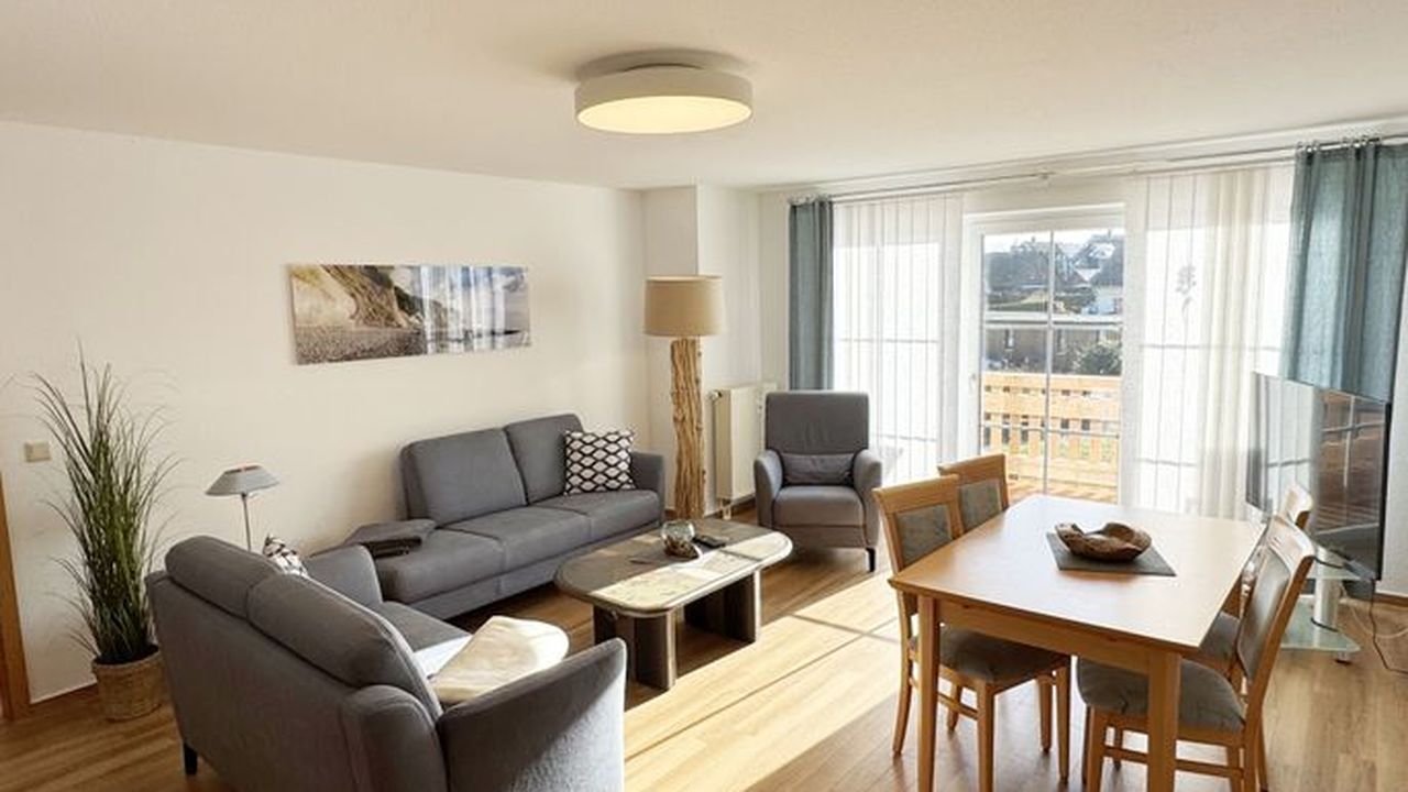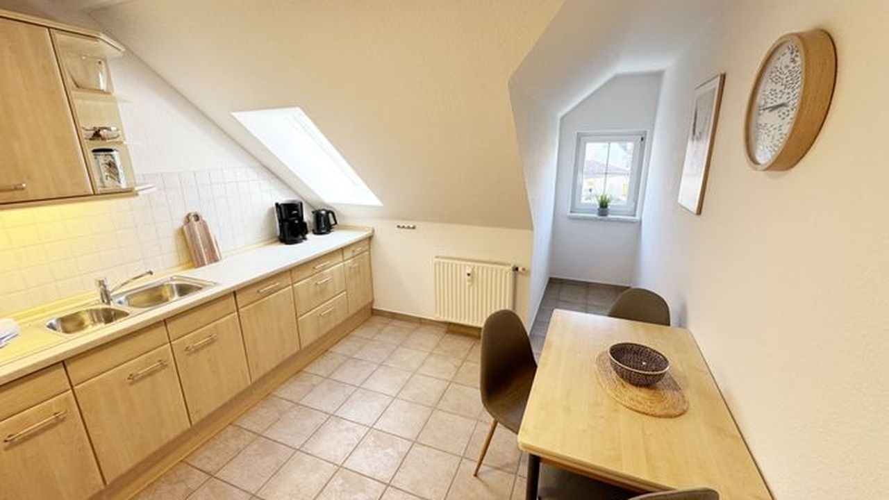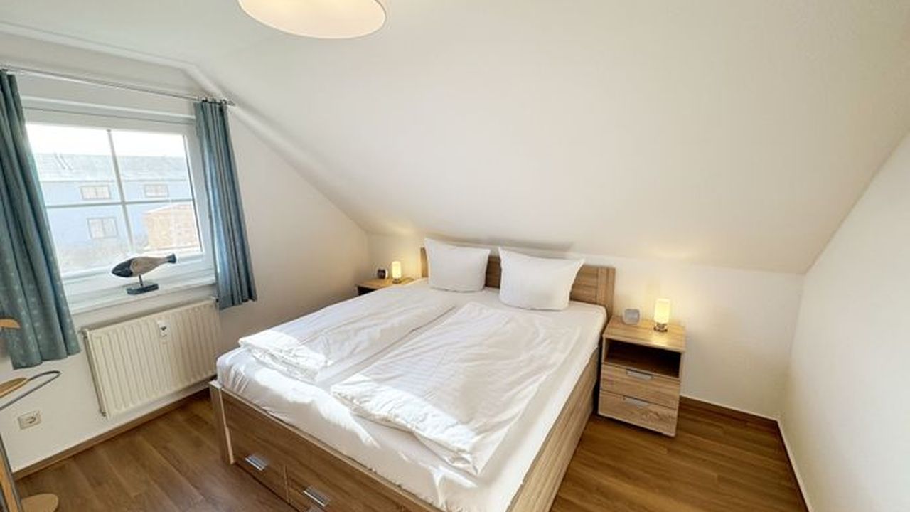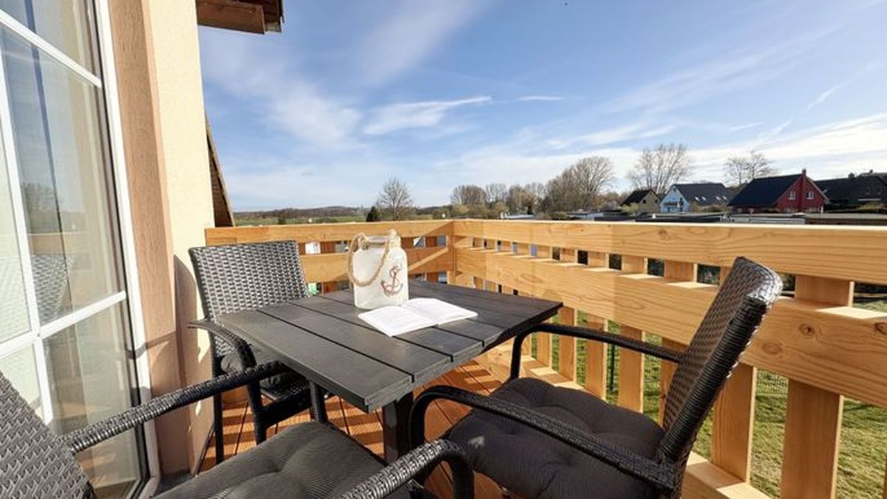Die mit 87 m² komfortable eingerichtete Nichtraucherwohnung befindet sich in der 1. Etage und bietet ausreichend Platz für max. 4 Erwachsene + 1 Kleinkind bis 3 Jahre im Kinderreisebett. Im großzügigen Wohnbereich laden ein 3-Sitzer, 2-Sitzer, ein Sessel, ein Couchtisch, eine Leselampe, Sideboard mit DAB-Radio sowie ein TV Board mit Smart-TV zum Verweilen ein. Ein Essplatz rundet den Wohnbereich ab. Auf dem bestuhlten Balkon mit Ostausrichtung gelangen Sie vom Wohnbereich. Beide Schlafzimmer sind mit je einem Doppelbett (2,00m x 2,10m & 2,00m x 2,00m), verstellbaren Lattenrosten, Nachttischablagen, Verdunklungsmöglichkeiten, Insektenschutzgitter und einen Kleiderschrank ausgestattet. Für die Gemütlichkeit sorgt in diesen beiden Zimmern ein Teppichboden. Die separate Küche verfügt einen Kühlschrank mit Eisfach, über ein Ceranfeld, mit Abzugshaube, einen Backofen, Geschirrspüler, Kaffeemaschine, Wasserkocher, Toaster, diverse Küchenutensilien und einen kleinen Tisch mit Bestuhlung. Das Tageslicht-Bad ist mit einer Dusche, ein WC, ein Waschtisch und einen Fön ausgestattet. Im kleinen Abstellraum befinden sich Reinigungsutensilien, ein Bügelbrett und Bügeleisen sowie ein Wäscheständer. Für unsere kleinen Gäste ist ein Hochstuhl und Kinderreisebett inklusive vor Ort. Ein Parkplatz befindet sich direkt am Haus und steht Ihnen kostenfrei zur Verfügung. Ihre mitgebrachten oder geliehenen Fahrräder können Sie auf dem Grundstück abstellen. Haustiere sind nicht erlaubt. Die Erstausstattung eines Wäschepaketes (komplette Bettwäsche, 1 Duschhandtuch, 2 kleine Handtücher) können Sie bis 14 Tage vor der Anreise gegen einen Aufpreis dazu buchen oder durch eigene ergänzen. Ab 2 gebuchten Paketen erhalten Sie einmalig 1 Geschirrtuch und einen Duschvorleger dazu.Sonstiges