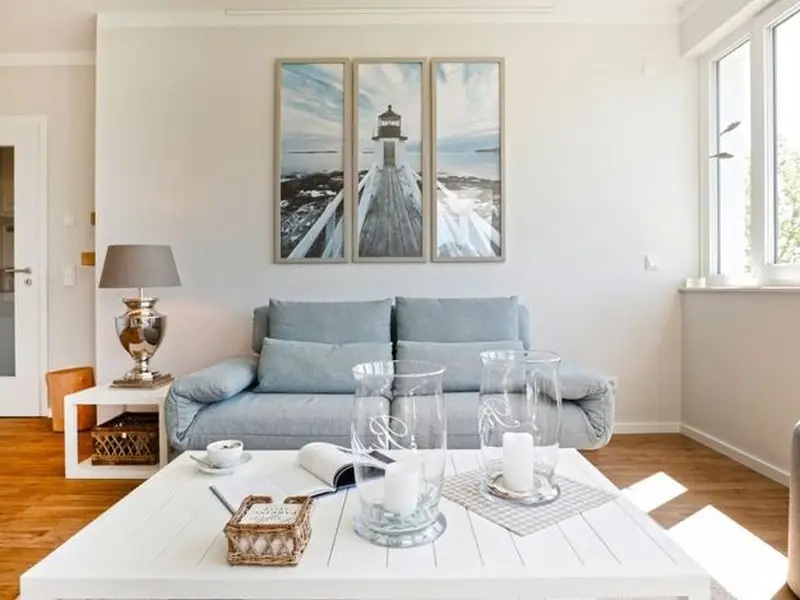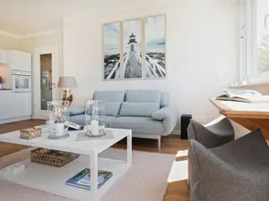 Die 2- Zimmer Ferienwohnung -Weisse Villen 8 Wellenklang- besitzt eine Wohnfläche von 61qm und verwöhnt mit einem sonnigen Süd-/West Balkon. Eine Belegung dieser gehoben ausgestatteten Wohneinheit ist mit 2 Personen und einem Kleinkind möglich.