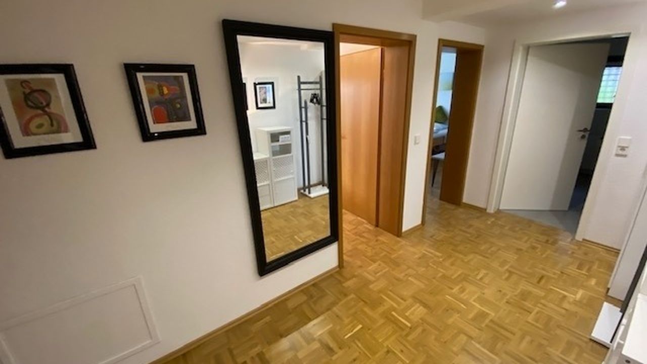 Allergiker freundliche Holz-Parkettböden, Bad mit hochwertigen Fliesen, Staubsauger-Roboter sowie Handstaubsauger
