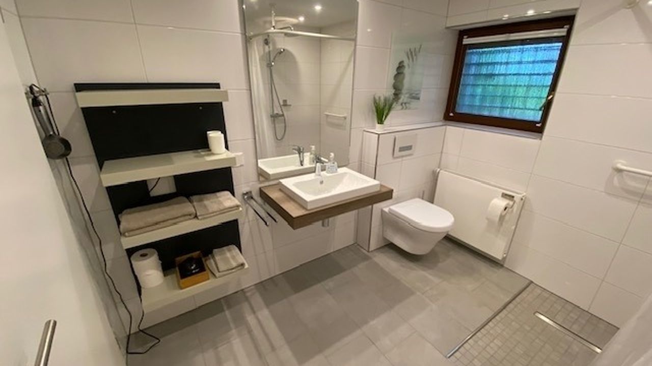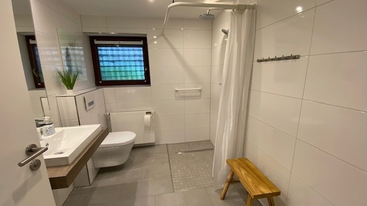 Tageslicht Bad bodenebene Dusche, Komfort WC mit Aktivkohle Luftfilter