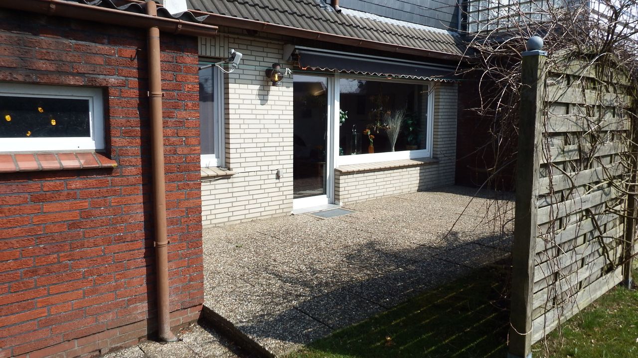 Die sonnige Terrasse hat eine Markise und Sichtschutzwände zum angrenzenden Garten. Im Garten können Ihre Kids sich auf einen großen Sandkasten freuen.