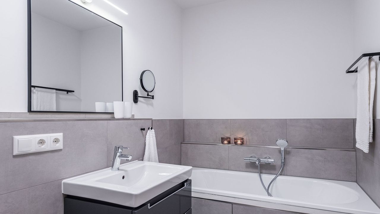 Sie ist für bis zu 2 Personen buchbar (1 Schlafzimmer mit Doppelbett 180 x 200 cm) und verfügt über eine gehobene 5-Sterne-Ausstattung: 1 Badezimmer, 1