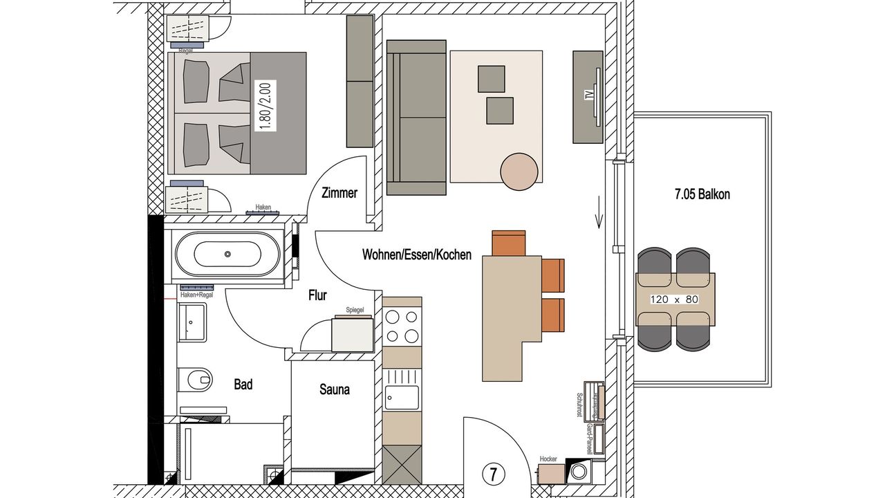 Peter's Lodge № 7Die 49 m² große Obergeschoss-Wohnung Peter´s Lodge № 7 steht nach der Fertigstellung erstmals zur Vermietung zur Verfügung. Die moderne Wohnung ist nur wenige Meter vom Strand und der Ostsee entfernt (100 m Luftlinie).