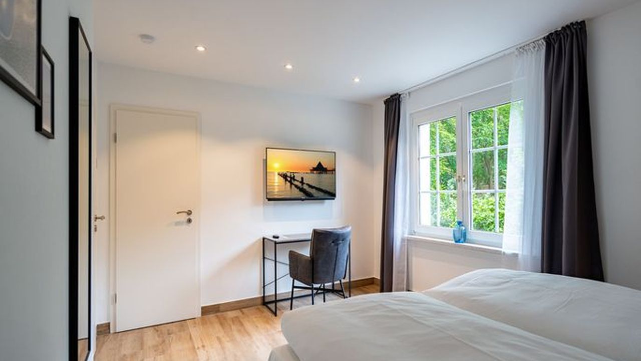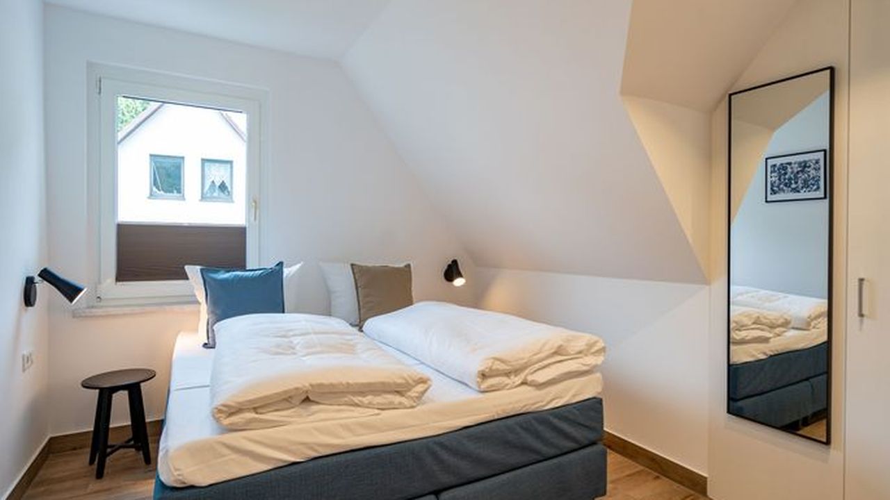 Willkommen im geräumigen Ferienhaus Amica über zwei Etagen, das perfekt für einen erholsamen Urlaub mit Familie oder Freunden geeignet ist. Mit einer Größe von 200 Quadratmetern bietet es ausreichend Platz für bis zu 8 Erwachsene, 1 Kind bis 16 Jahre und 2 Kleinkinder (bis 2 Jahre im Kinderreisebett). Das Ferienhaus liegt nur 700 Meter vom Strand entfernt, Ecke Setheweg und Landesstraße L266. Einkaufsmöglichkeiten und Gastronomie erreichen sie fußläufig. Im Erdgeschoss erwartet Sie ein offener Wohn- und Essbereich, der mit einer gemütlichen Sitzgruppe ausgestattet ist. Hier können Sie entspannen und gesellige Stunden verbringen. Ein großer 55-Zoll-Flat-TV und eine Bose Soundbar mit Bluetooth-Funktion stehen für Ihre Unterhaltung bereit. An kühleren Abenden sorgt der Gaskamin mit Fernbedienung für eine behagliche Atmosphäre. Der große Essplatz mit Sitzbank lädt zu gemeinsamen Mahlzeiten ein. Eine angrenzende voll ausgestattete Küche steht Ihnen zur Verfügung, sodass Sie Ihre Lieblingsgerichte ganz bequem zubereiten können. Im Erdgeschoss befindet sich außerdem ein Schlafzimmer mit einem komfortablen Boxspringdoppelbett (1,80 m x 2,00 m) und einem Flat-TV. Ein Badezimmer mit Dusche (1,00 m x 1,40 m), WC und Waschtisch steht Ihnen zur Verfügung. Zusätzlich gibt es ein Gäste-WC sowie einen Hauswirtschaftsraum mit Waschtrockner für Ihre Annehmlichkeiten. Das Obergeschoss beeindruckt mit einem großzügigen Badezimmer, das mit einer Dusche, einem Waschtisch, einem WC und einer finnischen Sauna ausgestattet ist. Hier können Sie sich nach einem ereignisreichen Tag wunderbar entspannen. Zwei weitere Schlafzimmer im Obergeschoss bieten jeweils ein komfortables Boxspringdoppelbett (1,80 m x 2,00 m), Einbaukleiderschränke und einen Flat-TV. Diese Rückzugsorte laden zum Ausruhen und Träumen ein. Das vierte Schlafzimmer ist besonders großzügig gestaltet und verfügt über ein Boxspringdoppelbett (2,20 m x 2,00 m), einen Kleiderschrank und Kommode sowie eine ausziehbare Schlafcouch, die als Aufbettung für ein Kind bis 16 Jahre genutzt werden kann. Von diesem Zimmer aus haben Sie Zugang zu einem eigenen Badezimmer mit Dusche, Waschtisch und WC. Um die Natur und die frische Luft zu genießen, stehen Ihnen zwei überdachte Terrassen zur Verfügung. Eine der Terrassen ist 12 Quadratmeter groß und die andere 16 Quadratmeter. Beide sind nach Südwesten ausgerichtet. Hier finden Sie bequeme Gartenmöbel vor. Ein eigener Gartenanteil steht Ihnen ebenfalls zur Verfügung. Während Ihres Aufenthalts können Sie kostenfrei das WLAN nutzen. Direkt vor dem Haus stehen Ihnen drei PKW-Stellplätze zur Verfügung. An einem Stellplatz befindet sich eine E-Ladestation (kostenpflichtig). Für Ihre Fahrräder haben wir eine Garage reserviert, die ausschließlich als Abstellplatz für Fahrräder vorgesehen ist.Lage