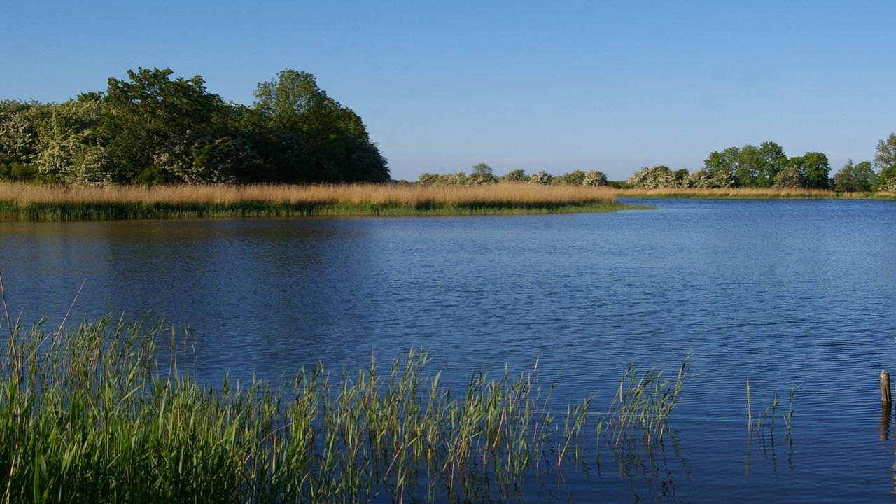 Das große Wassergrundstück mit direkten Blick auf den Bodden bietet Ruhe und Erholung.