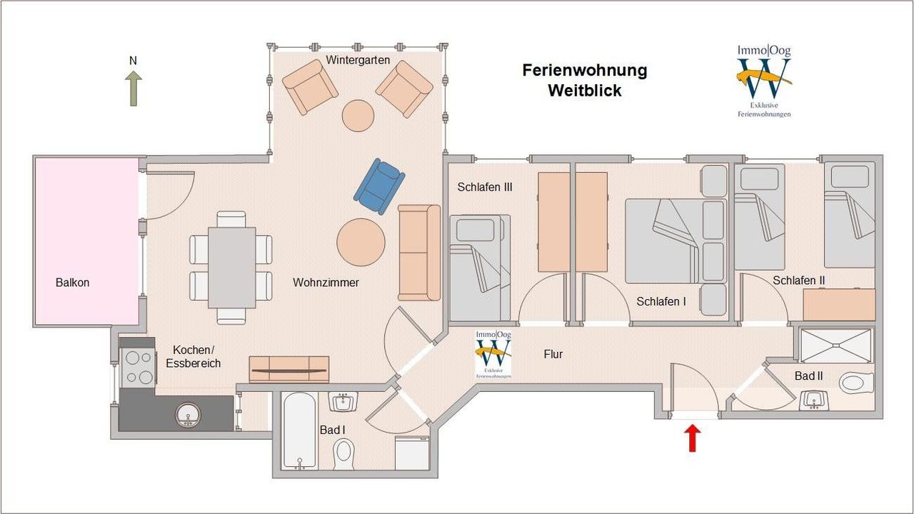 Die lichtdurchflutete und hochwertig ausgestattete Ferienwohnung „Weitblick“besticht durch Ihre ideale Lage auf Wangerooge - sowohl für Aktivurlauber durch