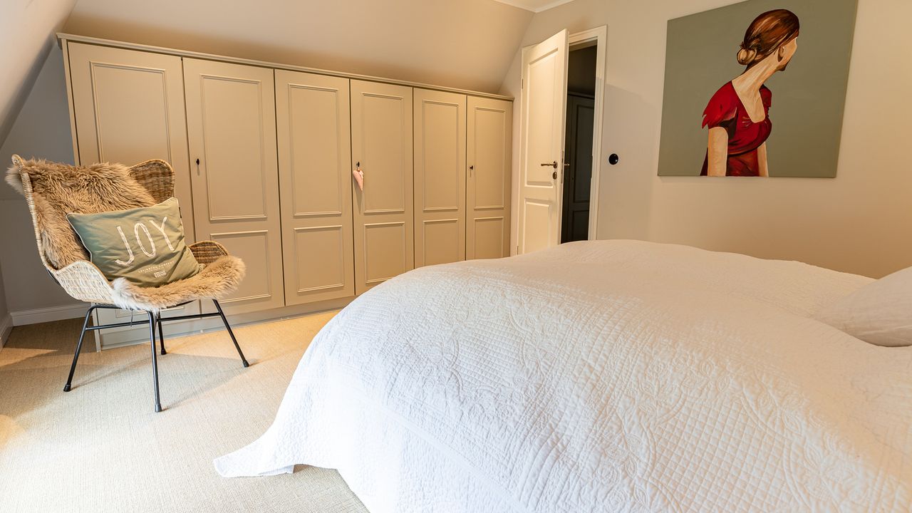 Ankommen, Abschalten und Eintauchen ins erholsame Inselleben – und das zu jeder Jahreszeit. Auf Föhr geht alles etwas entspannter zu und schon die Fahrt mit der Fähre lädt ein, das gewohnte Alltagstempo etwas zu entschleunigen. Im Fering Hof, der im Kern bis zu 200 Jahre auf dem Buckel hat, erwartet Sie friesische Gelassenheit.Die Green Wening, bzw. grüne Wohnung, ist über den Haupteingang zu erreichen und befindet sich im rechten Teil des Fering Hofes. Bei ländlicher Ruhe kann man den Abend vor dem Haus mit dem Blick über die Marsch genießen. Die Wohnung ist ausgelegt für 6 Personen und verfügt über 3 Schlafzimmer. Wo sich Hase und Igel "gute Nacht" sagen, so schläft man in den Schlafzimmern, wovon 2 mit einem Doppelbett ausgestattet sind. Abhängig von der Jahreszeit, hört man hier abends nur das Schnattern der Graugänse in der Marsch. Im dritten Schlafzimmer schläft man in gemütlichen Alkoven, daher ist es besonders als Kinderzimmer attraktiv. Auch Erwachsene können darin wohlig schlafen. Ein kleiner Tresor ist im Einbauschrank vorhanden. Ein Kinderhochstuhl ist ebenfalls vorhanden.