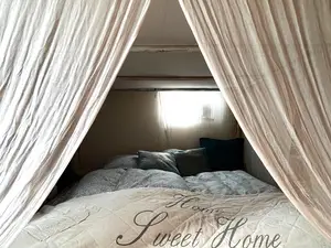 Schlafen Sie traumhaft im Himmelbett ( 2 x 2 m ) und / oder in einem wunderschönen Boxspringbett .