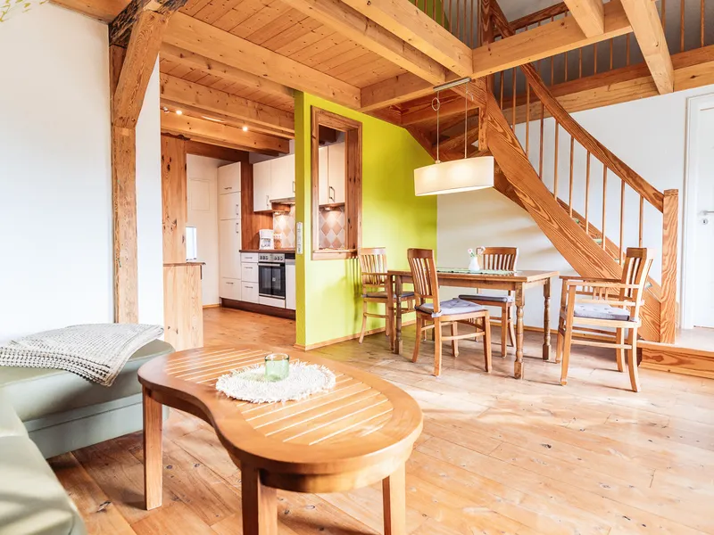 Urlaub und Erholung für Groß und Klein auf unserem schönen Bauernhof in Strandnähe mit eigener BrauereiUnsere schöne Ferienwohnung "Kleeblatt" liegt im 1 OG des alten Bauernhauses und verfügt über einen großen Balkon Richtung Westen. Die Wohnung besitzt 2 Schlafräume, einen Wohn-/Essbereich, eine Küche und ein Duschbad. Die Küche ist komplett ausgestattet mit allem, was es für einen erholsamen Urlaub benötigt. Waschmaschine und Trockner können kostenpflichtig bei uns mitbenutzt werden.