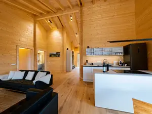 Bereits beim Betreten des barrierefreien Bungalow-Chalets spürst du das einzigartige Raumklima unserer nachhaltigen Holzhäuser.