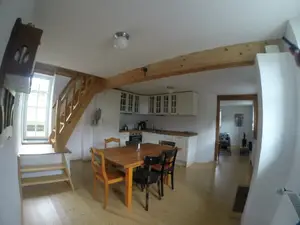 Im Untergeschoss gibt es ein Bad mit einzigartiger Bruchsteinmauer, Badewanne und WC, ein Wohnzimmer, ebenfalls mit Bruchsteinmauer, mit großem LED Fernseher, DVD-Player und Musikanlage, eine Küche mit Spülmaschine und Induktionskochfeld sowie ein Abstellraum mit Waschmaschine. Das Obergeschoss beherbergt 3 Schlafzimmer sowie ein Bad mit Dusche und WC.