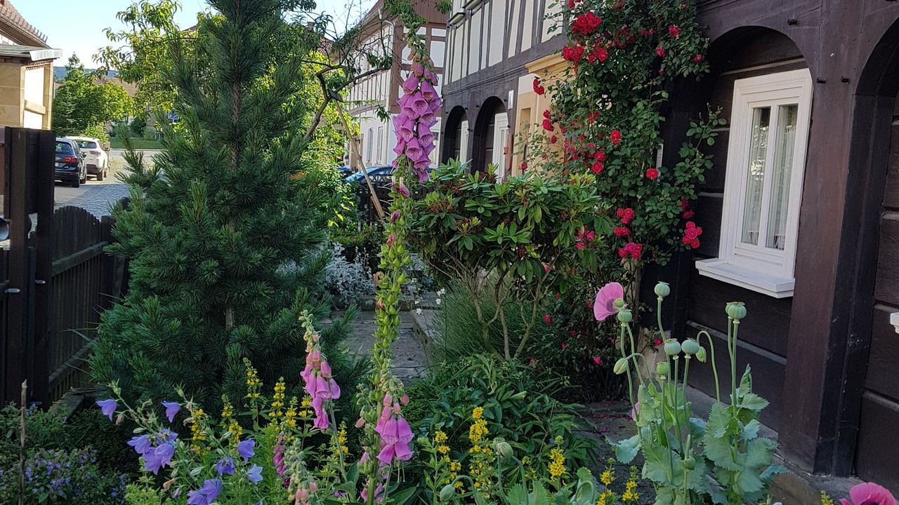 Sie können bei schönem Wetter im Garten frühstücken, mit frischen Brötchen und dem für die Region typischen Kleckskuchen aus der nahe gelegenen Bäckerei und dabei dem Läuten der Glocken der Dorfkirche lauschen.