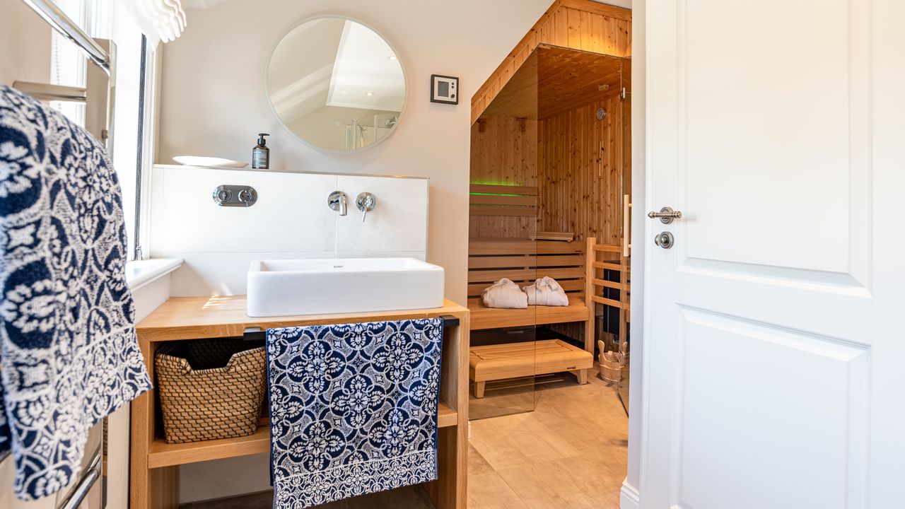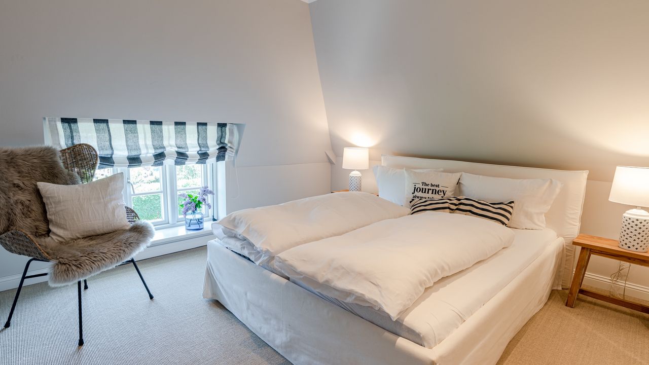Ankommen, Abschalten und Eintauchen ins erholsame Inselleben – und das zu jeder Jahreszeit. Auf Föhr geht alles etwas entspannter zu und schon die Fahrt mit der Fähre lädt ein, das gewohnte Alltagstempo etwas zu entschleunigen. Im Fering Hof, der im Kern bis zu 200 Jahre auf dem Buckel hat, erwartet Sie friesische Gelassenheit.Die Blä Wening bzw. blaue Wohnung befindet sich im linken Teil des Fering Hofes und ist für 4 Personen ausgelegt. Sie verfügt über 2 Schlafzimmer von denen man in den Garten mit Obstbäumen wie Birnen, Äpfel und Pflaumen blickt. Beide Schlafzimmer sind hell eingerichtet und haben ein Doppelbett. Das Schlafzimmer im Erdgeschoss hat einen großen, beleuchteten und begehbaren Kleiderschrank. Hier befindet sich auch ein kleiner Tresor.