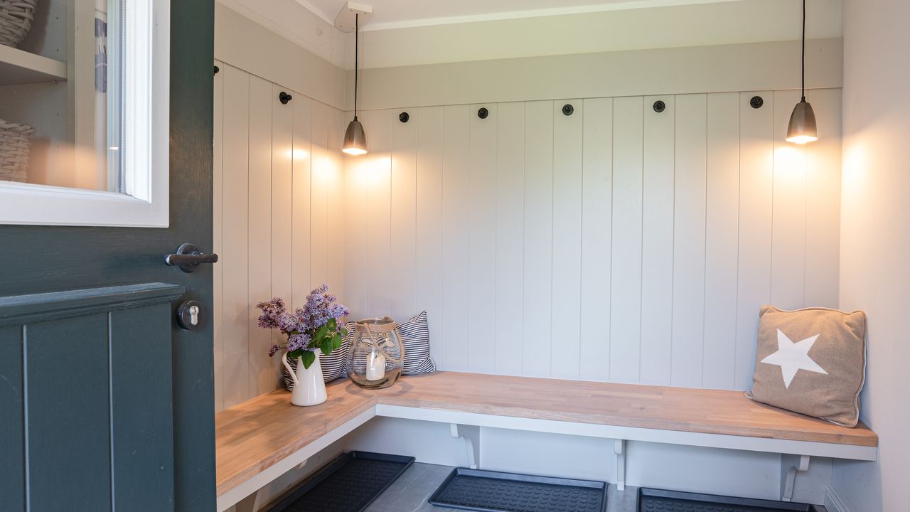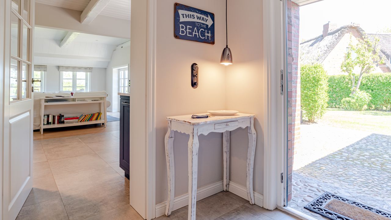 Nach einem sonnigen Strandtag oder einer Wanderung durchs Watt kann man im geräumigen Windfang Strandtaschen, Jacken, Fahrradhelme und Schuhe bequem abstellen.