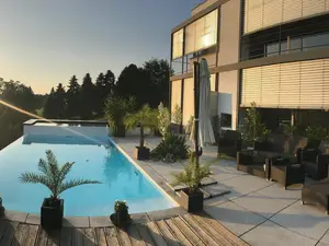 Luxus Appartement am Tor zur Steirischen Toskana. Das Appartement ist Teil eines Einfamilienhauses mit separatem Zugang.Ausstattung: Küche mit Herd, Backrohr, Kühlschrank, Kaffeemaschine, Wasserkocher, Geschirr, Waschmaschine, Geschirrspüler. Wohn-, Schlafraum mit Stereoanlage, Fernsehgerät, WLAN, und Doppelschlafsofa. Infrarotsauna im Wohnbereich (Nutzung gegen Aufpreis), Handtücher und Bettwäsche sind inkludiert. Eigener Terrassenbereich mit Südwest Lage am Pool. Pool kann während der Badesaison mitbenutzt werden. Parkplatz (PKW) vorhanden.