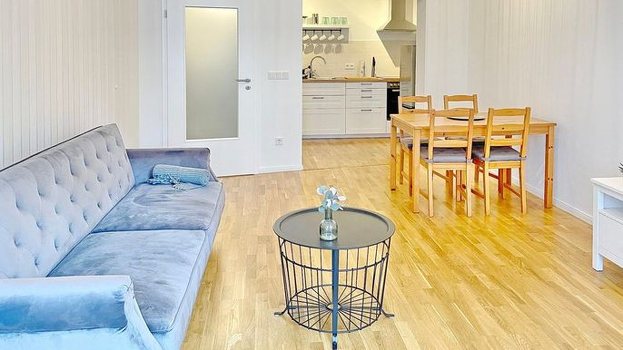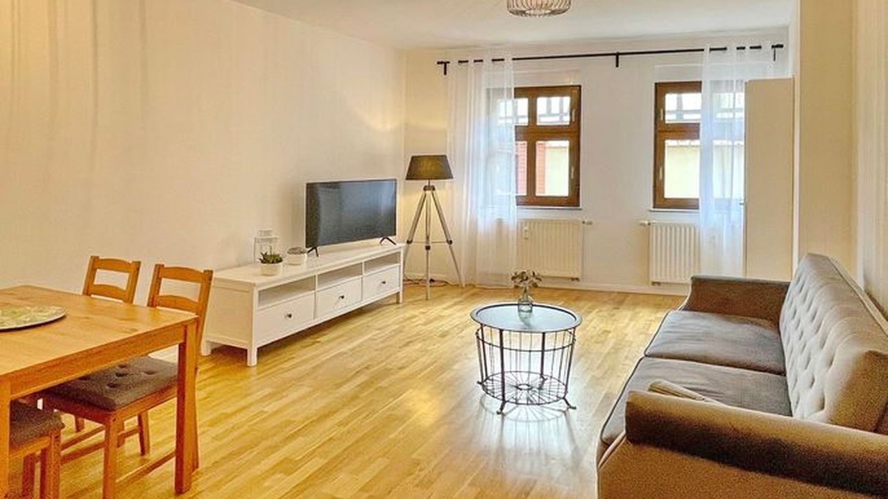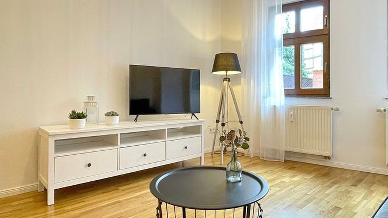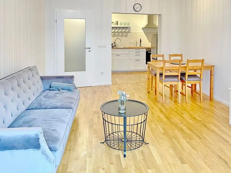 Diese freundlich eingerichtete Ferienwohnung im modernen Landhausstil bietet Ihnen ein großes Wohnzimmer mit Esstisch, Flachbild-TV, sowie eine gemütliche Schlafcouch. Die Küchenzeile ist in der Wohnzimmernische integriert. Sie ist voll ausgestattet, mit einem Backofen, einem Standkühlschrank und Gefriermöglichkeit. Vom Flur aus gehen Sie links ins geräumige Schlafzimmer mit einem Doppelbett. Das Zimmer befindet sich auf der Hinterseite der Wohnung und liegt somit zur Gartenseite, sehr ruhig. Das Bad ist mit einer Badewanne ausgestattet. Dies können Sie auch als Dusche mit einer Glasklappwand umfunktionieren. WC und Waschbecken mit Unterschrank, Handtuchhalter und Regal stehen Ihnen ebenfalls im Bad zur Verfügung.Die Lage ist sehr zentral. Sie laufen ca. 5 Minuten zum kleinen Hafen. Die Straße ist eine Nebengasse von der Hauptstraße, somit ist die Ferienwohnung sehr ruhig gelegen. Am Ende der Straße befindet sich die kleinste Brauerei Brandenburgs Babben.