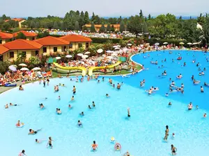 Peschiera del Garda. Die Ferienwohnung befindet sich in einer Ferienanlage, auf einem geschlossenen Gartengrundstück mit Wiese, Blumen, Sträuchern und Bäumen. Die Zufahrt erfolgt über eine Nebenstraße (asphaltiert). Parkplatz (für 1 Pkw) auf dem Grundstück.