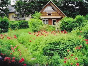 Zinnowitz (Seebad). Das Ferienhaus befindet sich auf einem 800 qm großen, geschlossenen Gartengrundstück mit Wiese, Blumen und Sträuchern, von einem Zaun begrenzt. Der Vermieter wohnt nicht im Haus oder auf dem Grundstück. Ein sehr einfach eingerichtetes Anwesen, das für anspruchslose Kunden geeignet ist. +++Steile Treppen, wie Sie auch auf dem Foto sehen können. Vorsicht+++. Auf dem Grundstück befindet sich ein weiteres kleines FerienHaus, daß duch eine Hecke optisch getrennt ist. 400 qm stehen zur alleinigen Nutzung. Das Objekt ist nicht für Bauarbeiter erlaubt. Es ist nur für Familien mit Kinder geeinigt. Parkplatz (für 2 Pkws) auf dem Grundstück.