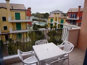 Cavallino-Treporti. Die Ferienwohnung befindet sich in einer Residenz, auf einem Gartengrundstück. 3 teilige Anlage mit 84 Wohneinheiten. Parkplatz auf dem Grundstück.
