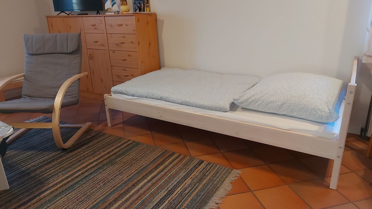Die Wohnung besteht aus einem Wohnzimmer mit einem Schlafsofa, einem Eizelbett und einem Küchenbereich, einem Schlafzimmer mit einem Doppelbett (140x200) und einem Badezimmer. Draußen steht eine Terasse mit Sitzmöglichkeiten zur Verfügung.Im Außenbereich gibt es einen großen Garten, ganz viele Tiere: Schafe, Ziegen, Ponys, Esel, Hühner, Kaninchen und Katzen, einen Spielbereich mit Rutsche, Schaukel und Trampolin und eine Terrasse, die zum gemütlichen und angenehmen Ausklingen des Tages einlädt.