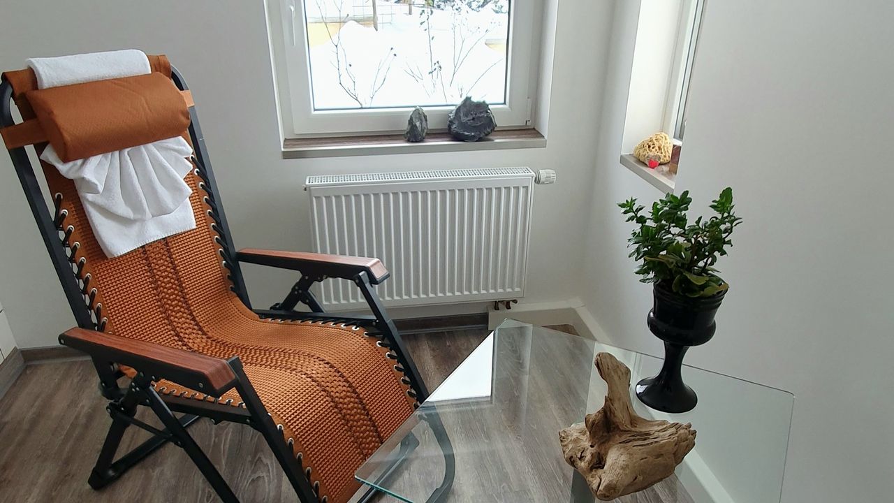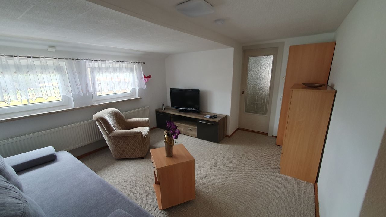 Das Ferienhaus bietet Platz für maximal 5 Personen. Im Erdgeschoss Wohnzimmer, Schlafzimmer, Küche, Bad und WC. Ein zweites Schlafzimmer mit Aufenthalts-und Schlafraum befindet sich in der oberen Etage. Alles ist bequem und komfortabel eingerichtet, dass große lichtdurchflutete Wohnzimmer mit großer Sitzecke und Relaxsessel garantiert viel Platz zum entspannen. SAT-TV und kostenloses WLAN, Komplett eingerichtete Küche mit Geschirrspüler, Mikrowelle und Backofen mit Cerankochfeld, Handtücher und Bettwäsche. Saunanutzung auf Anfrage und gegen Gebühr.In einer Grillecke stehen Gartenmöbel und Hollywoodschaukel zur Verfügung. Die Wiesen am Haus bieten viel Platz zum Spielen.
