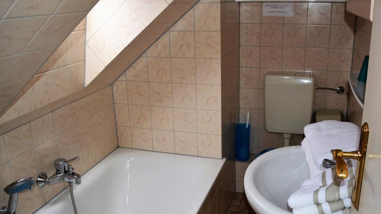 Das kleine 1-Raum-Appartement im Dachgeschoss (!!! Dachschrägen, niedrige Deckenhöhe) verfügt über einen Wohn-Schlafraum mit zwei Einzelbetten, Wohnküche mit Essecke (TV) sowie Badezimmer mit Duschwanne/WC. Terrasse und PKW Abstellplatz am Haus.NICHTRAUCHERWOHNUNG!!!