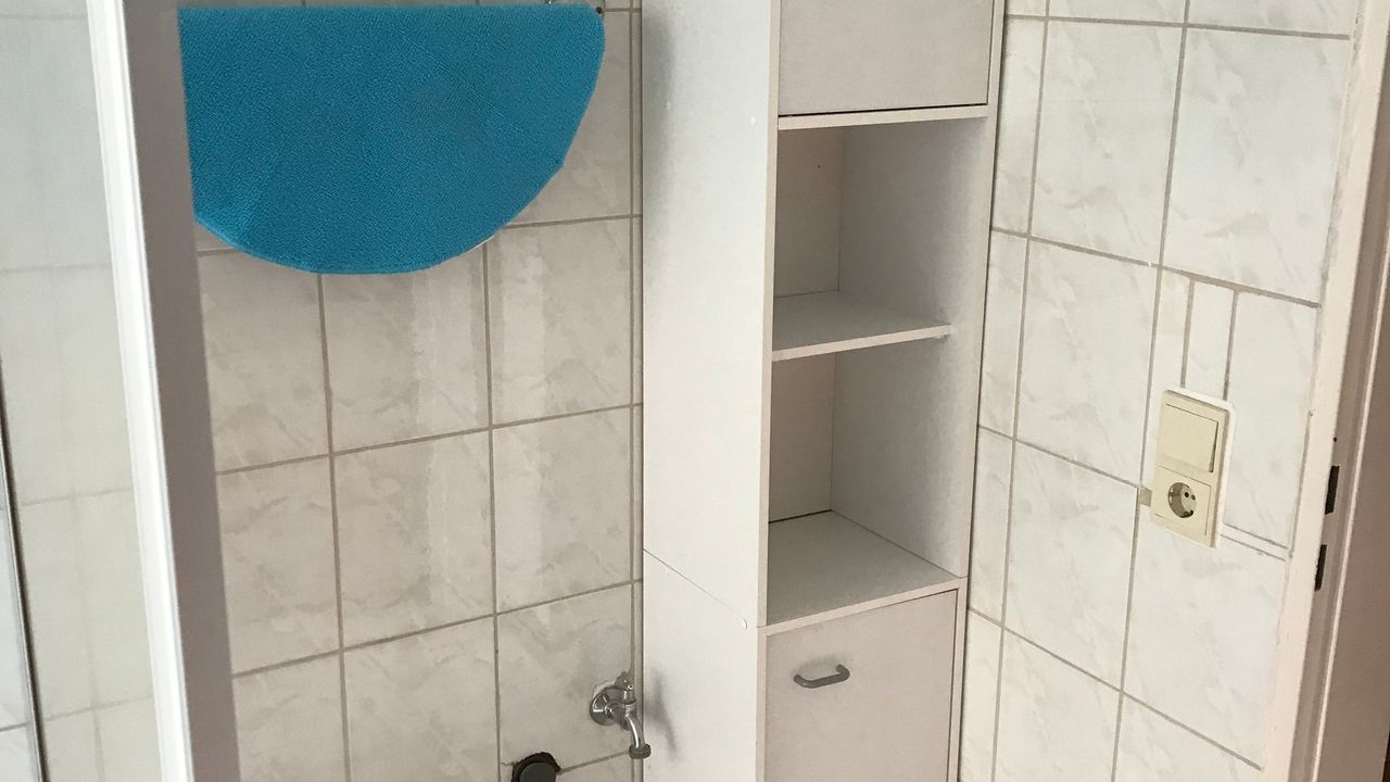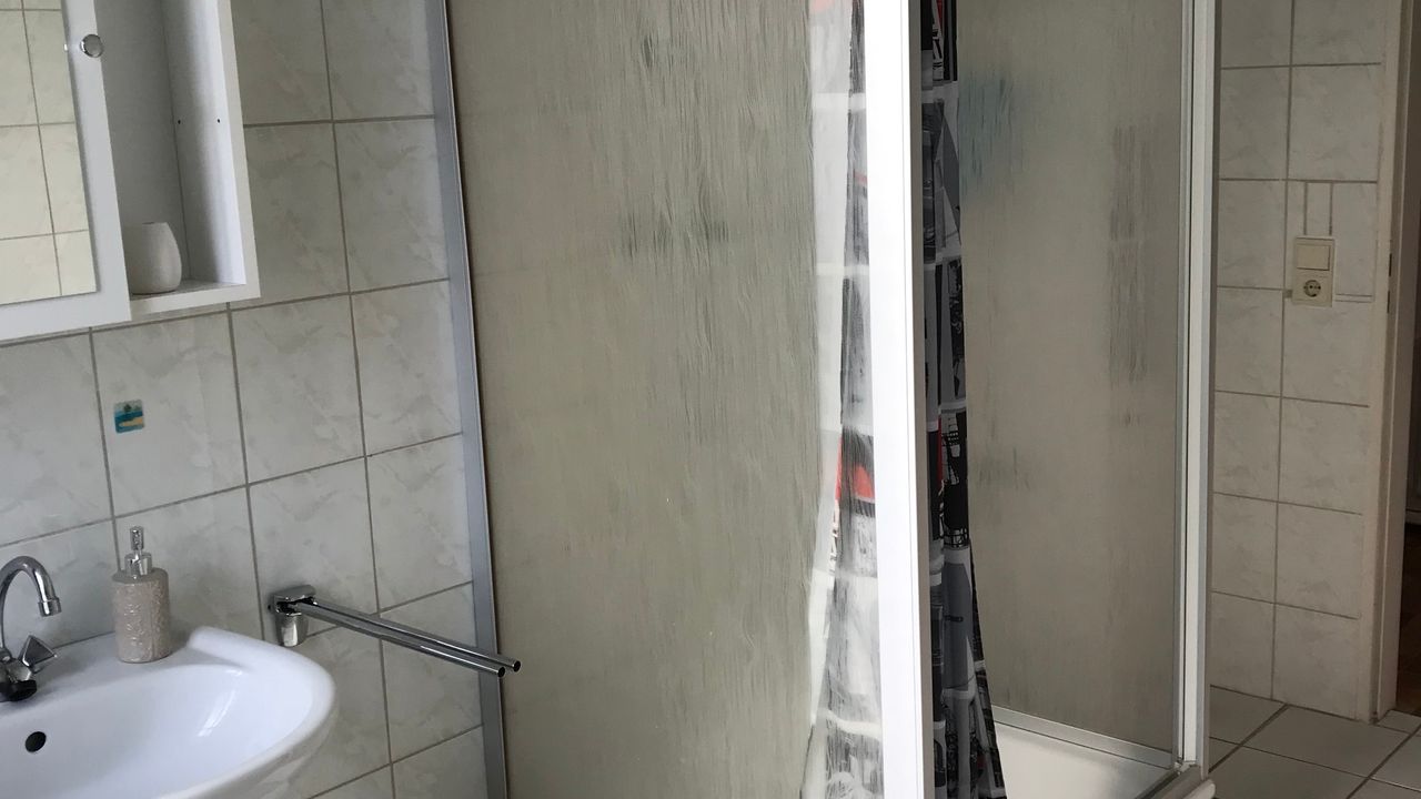 Das Badezimmer ist mit einer Dusche ausgestattet.