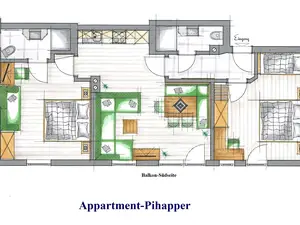 Ihr Appartment befindet sich auf der zweiten Etage und bittet Platz für 2-6 Personen. Es besteht aus einem großen Wohnzimmer mit offener Küche, 2 Schlafzimmern und 2 modernen Badezimmer. Vom Balkon haben Sie einen atemberaubenden Blick auf den Nationalpark Hohe Tauern.