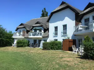 Die Ferienwohnung Nr. 494 im Reethaus" Wolgastsee" in Balm befindet sich in der sonnenreichsten Region Deutschlands. Die Ferienwohnung unter Reet direkt am Balmer See ist ca. 72 m² groß, verfügt über ein Wohn-Esszimmer mit Küchenzeile, zwei Schlafzimmer mit TV und zwei Bäder. Fußbodenheizung ist in den Bädern vorhanden. Der nach Süden ausgerichtete windgeschützte Balkon, Sonne von morgens bis abends, verleiht einen wunderschönen Blick auf die Anlage. Der Balkon ist mit 4 Stühlen, Tisch und Sonnenschirm bestückt.Im Eingangsbereich befindet sich ein großer gemeinschaftlicher Abstellraum für die Fahrräder oder Golfbags . WLAN-Anschluss besteht.
